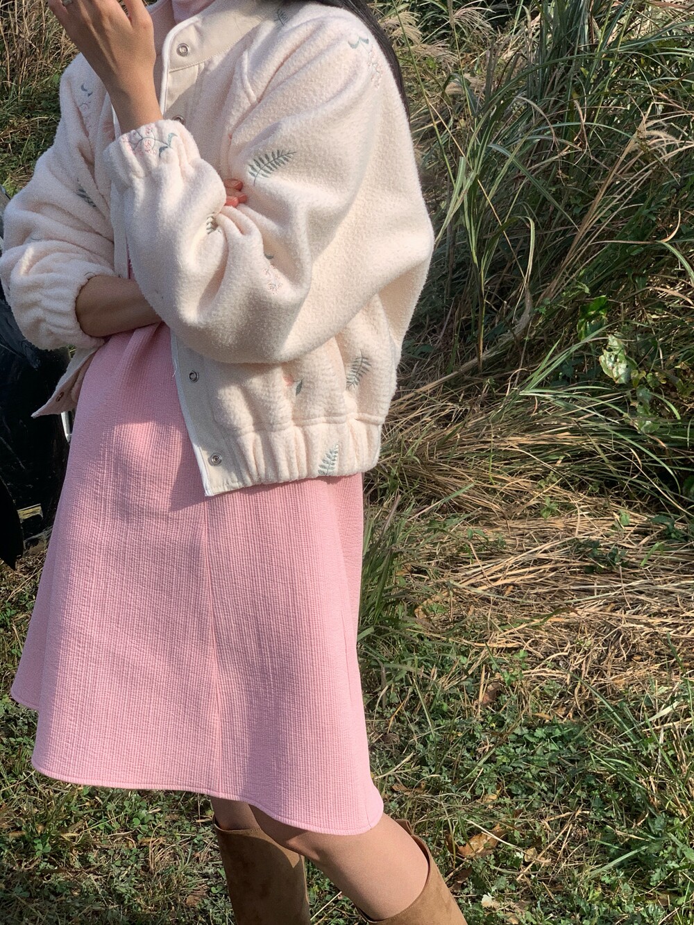 인형옷처럼 봉긋하게 주름이 잡혀요. 옆선에 주머니도 꼼꼼하게 넣어두었습니다.