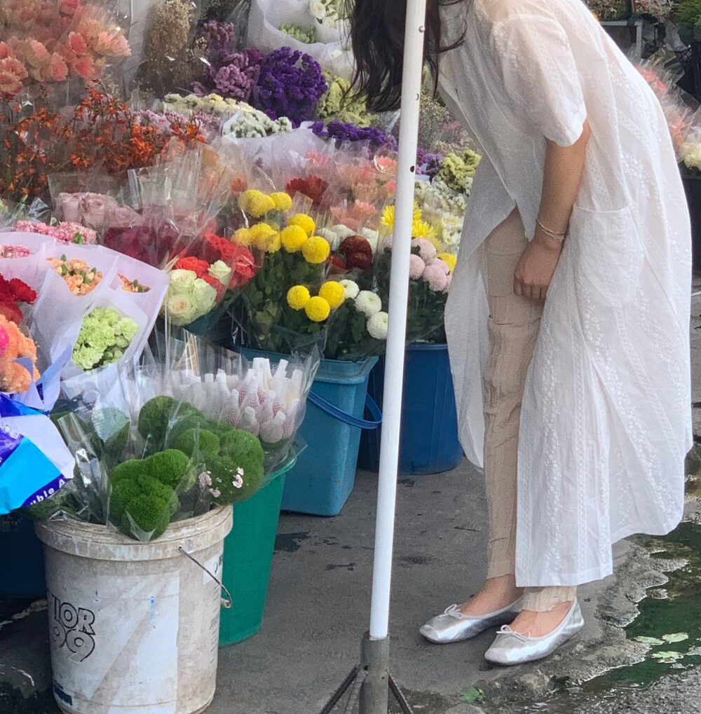여러 가지의 입체적인 자수가 단조롭지 않고 사랑스러운 분위기를 연출해줍니다