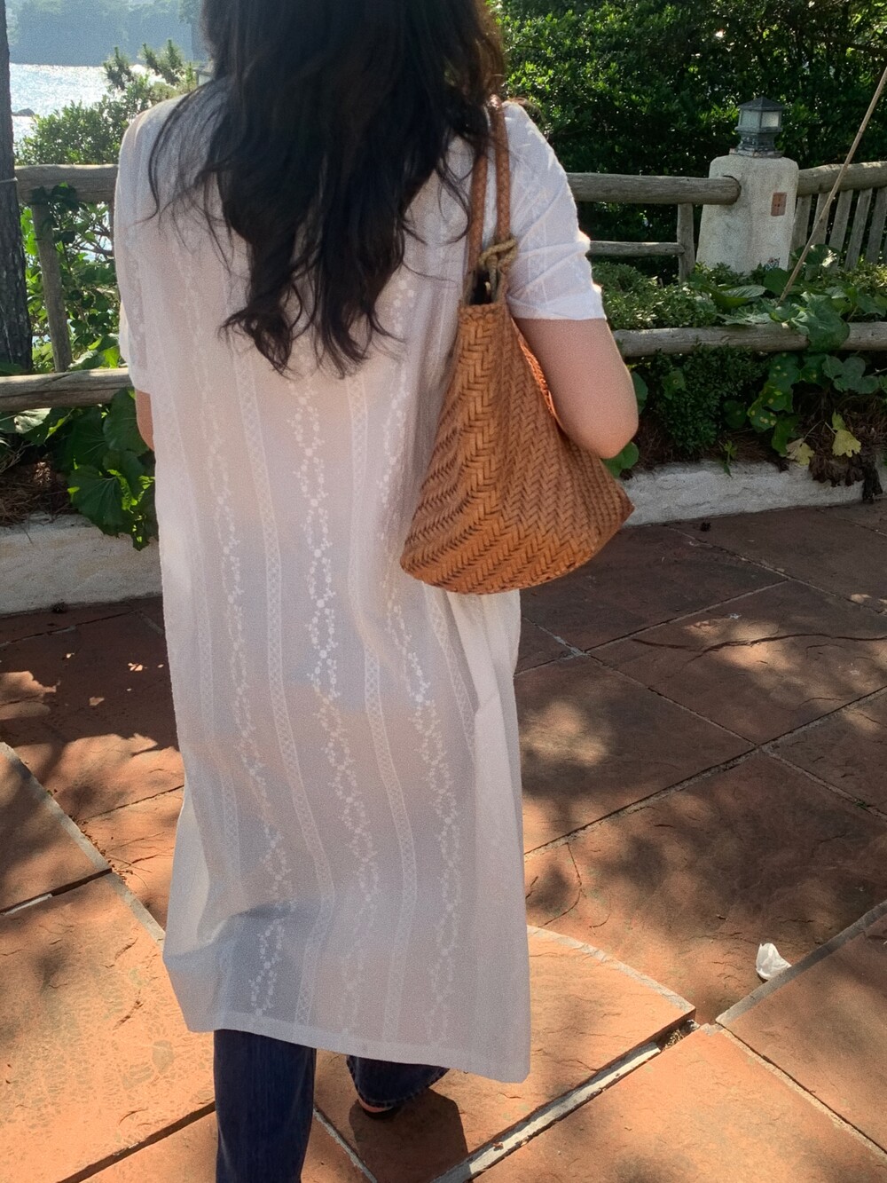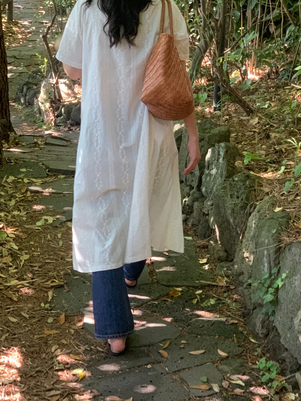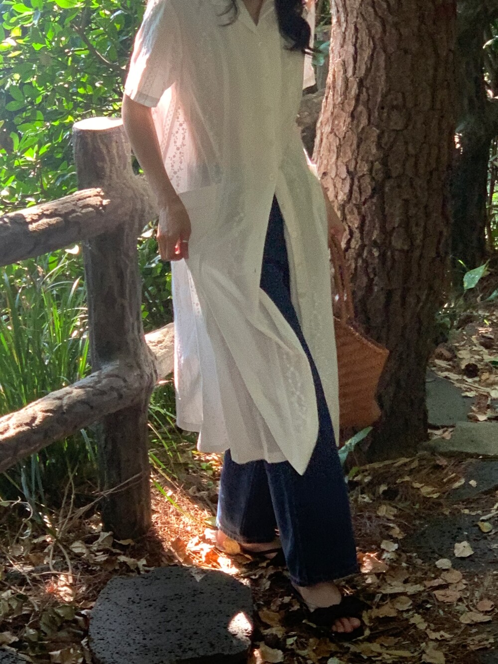 팬츠와 함께 레이어드하면 은은하게 비치는 느낌이 매력적이에요