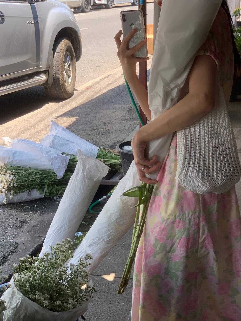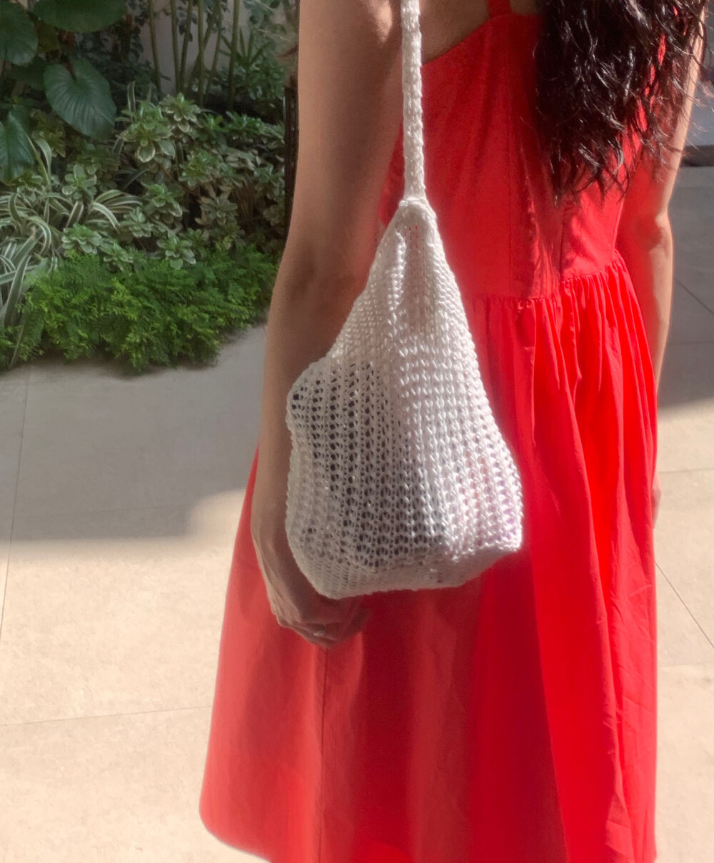 자연스럽게 늘어지는 느낌이 예쁜 니트백이에요