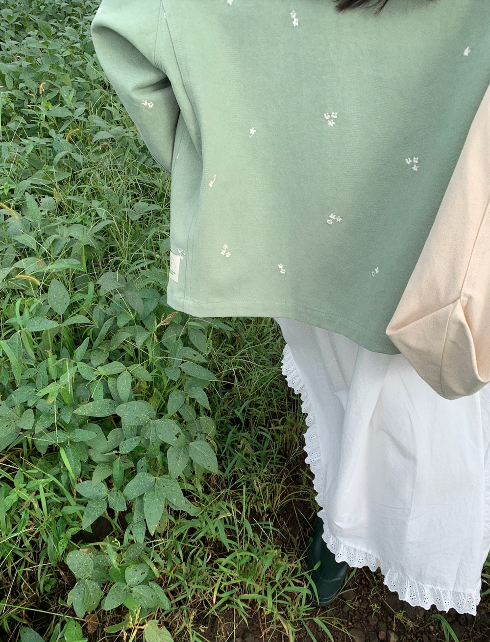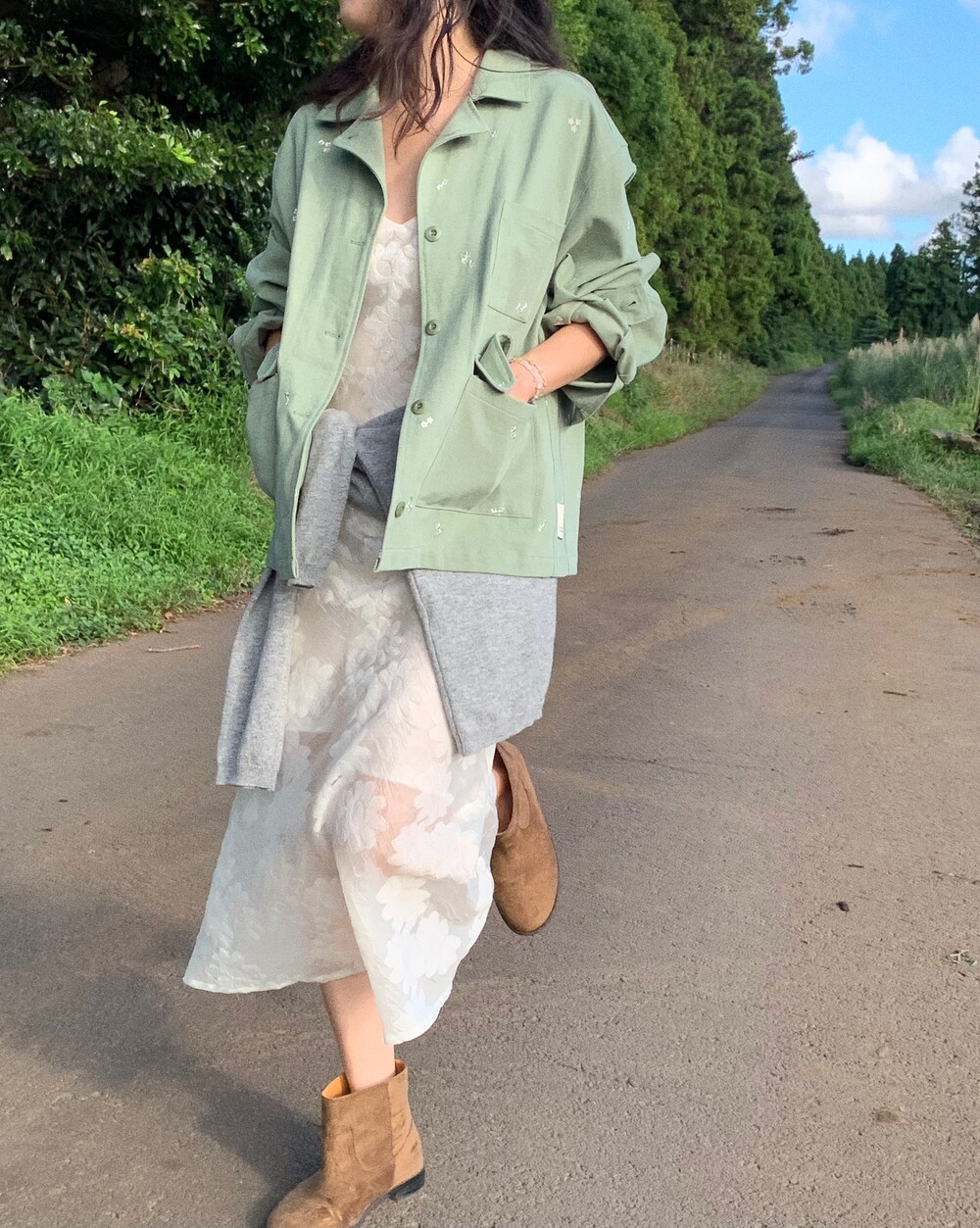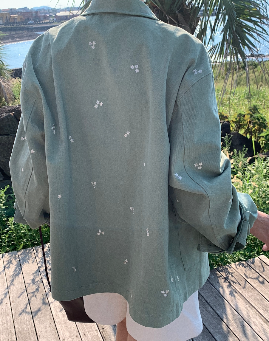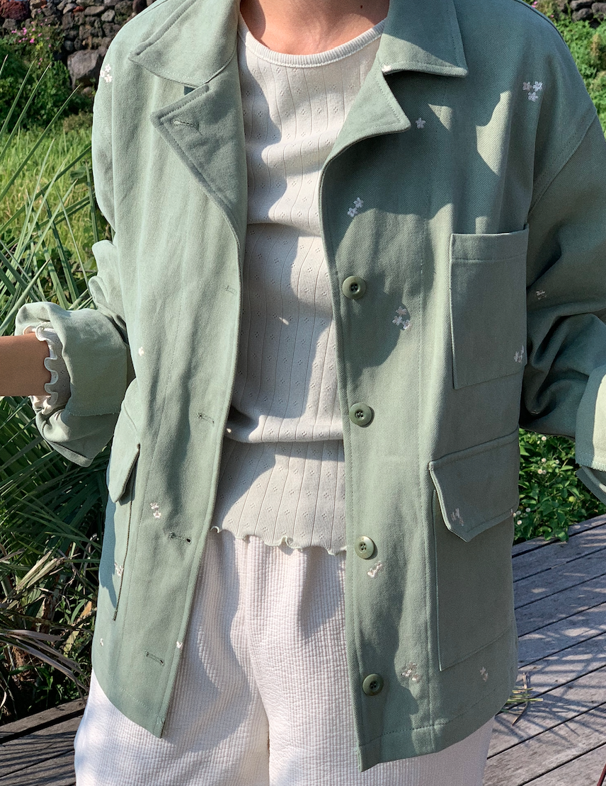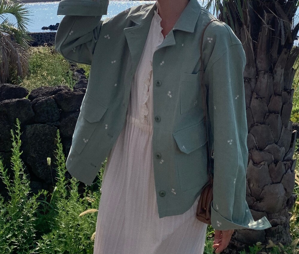 그꽃의 무드를 가득 담아 워크 자켓을 만들었어요.