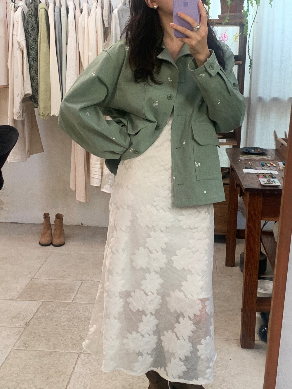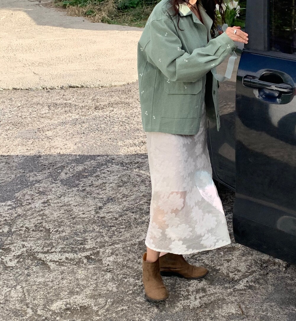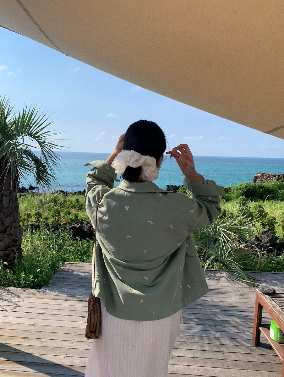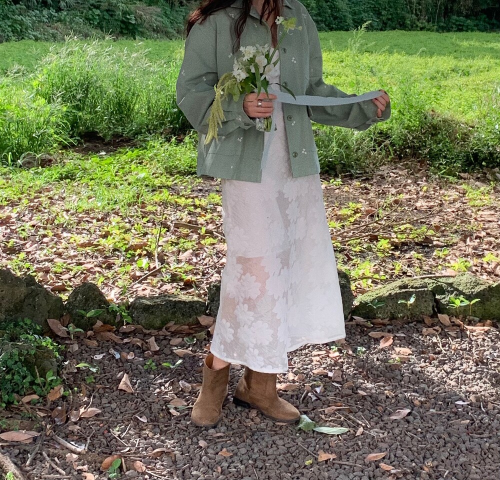 그꽃의 무드를 가득 담아 워크 자켓을 만들었어요.