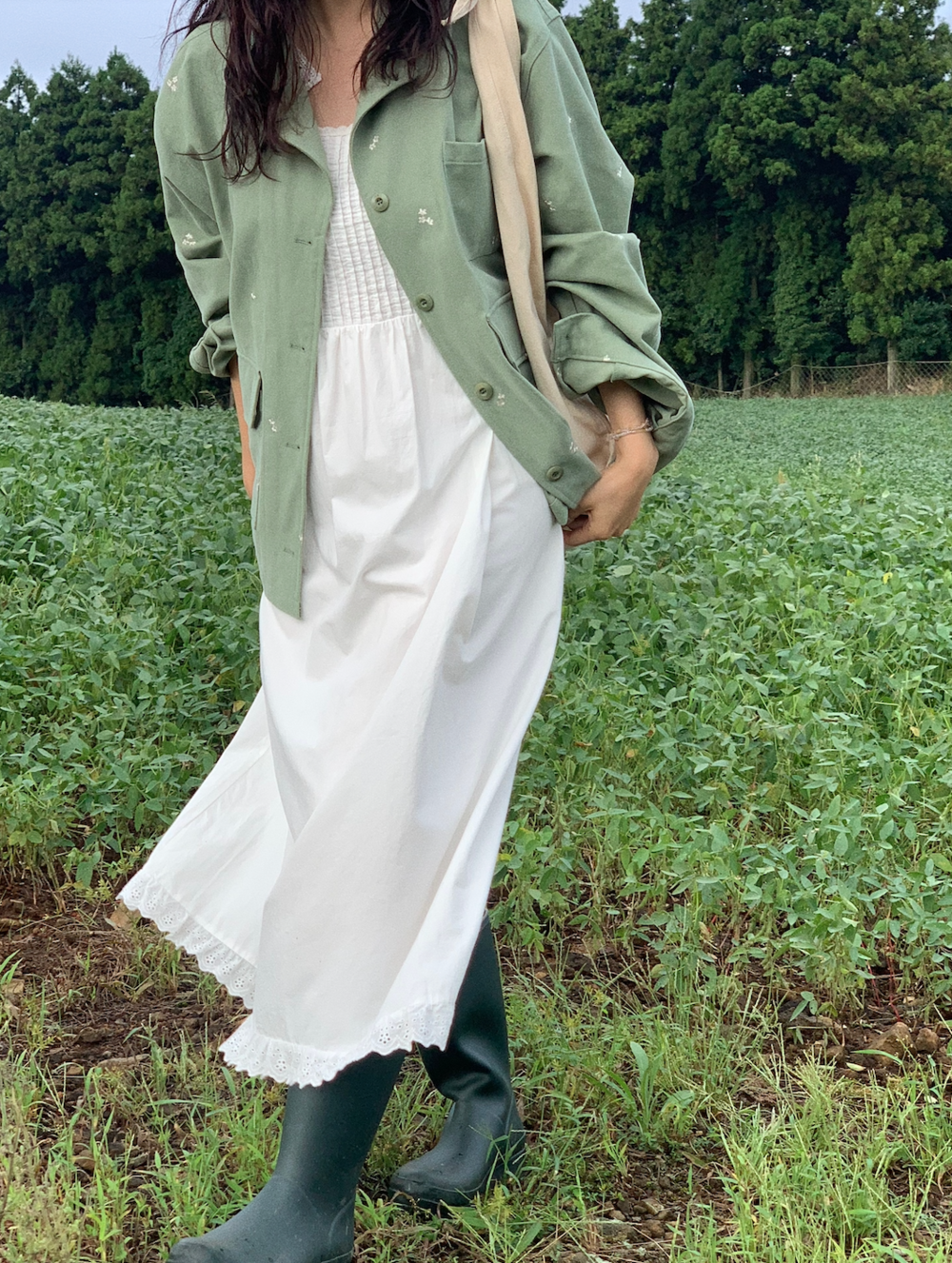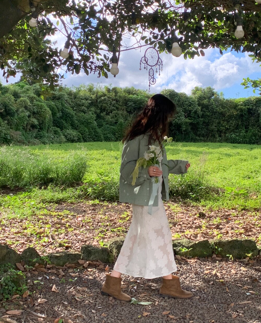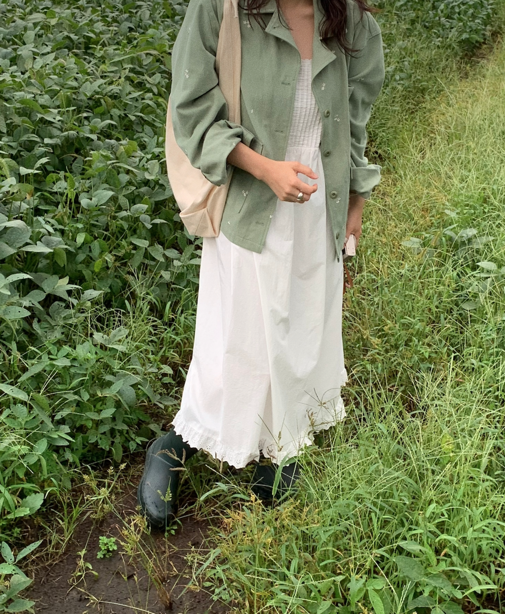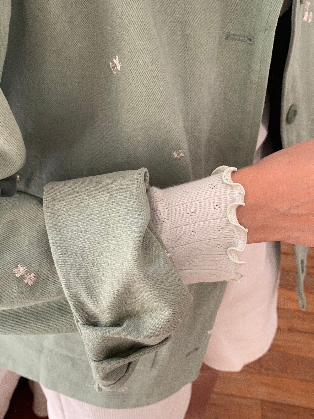 그꽃의 무드를 가득 담아 워크 자켓을 만들었어요.