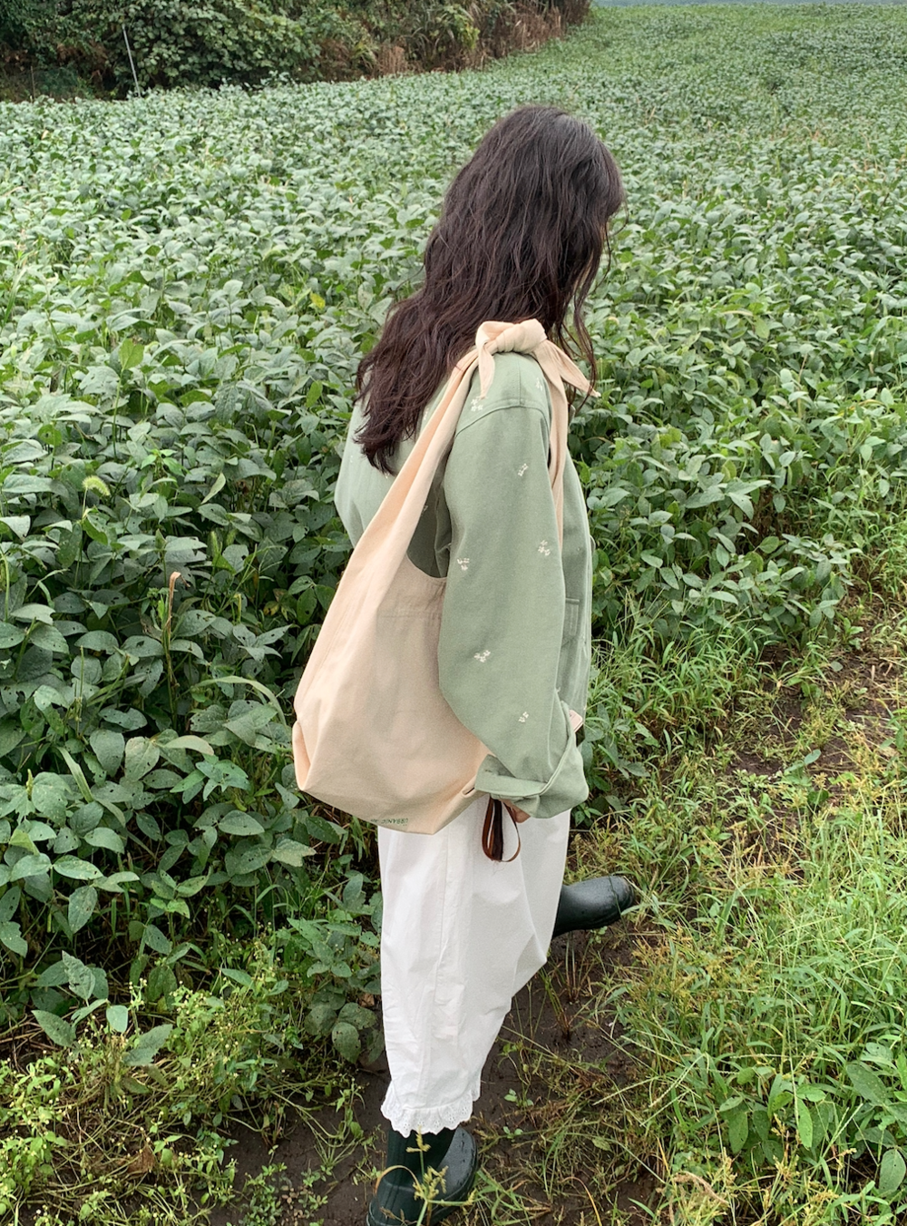 톡톡한 두께의 트윌 피치코튼 소재에 자수를 새겼습니다