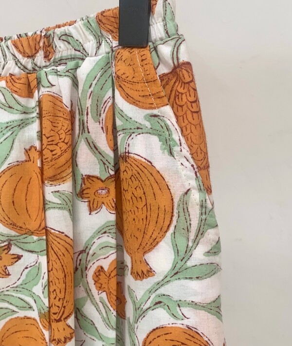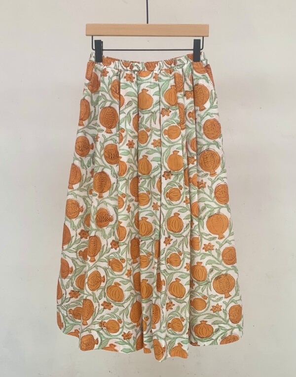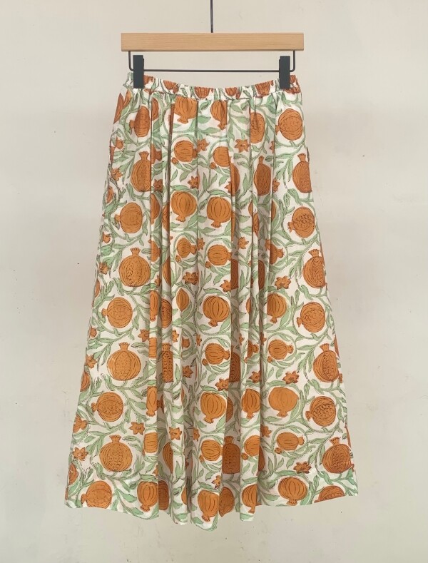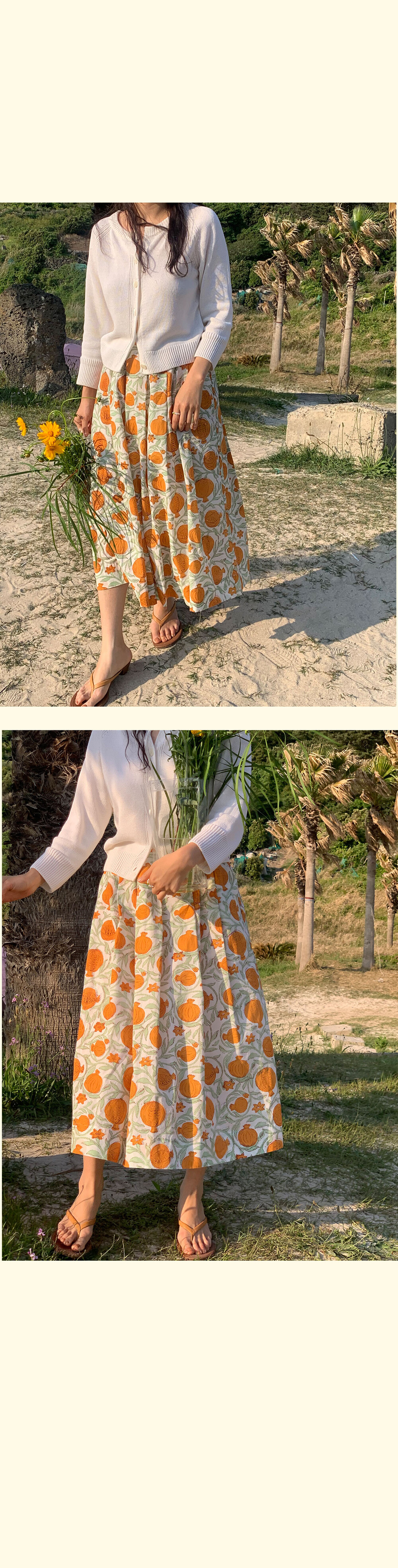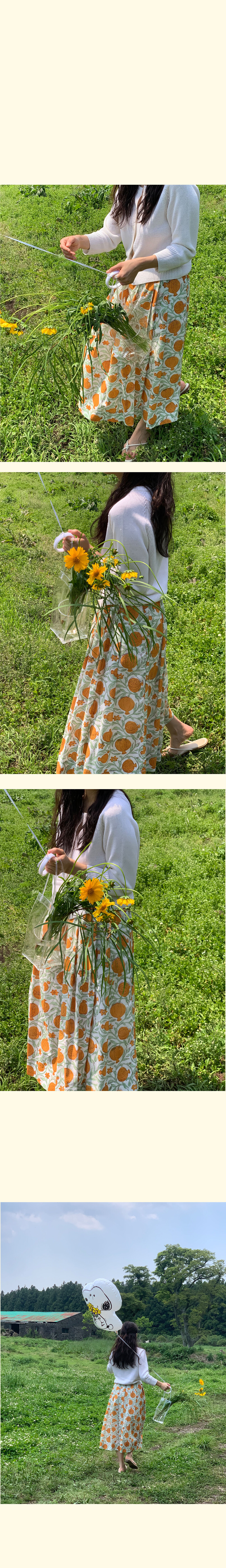 상큼 발랄한 오렌지 컬러의 프린트의 스커트입니다