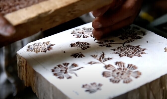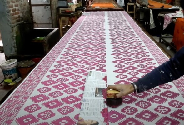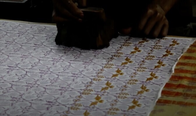 손으로 하나하나 찍어내는 핸드블럭 프린팅 방식입니다