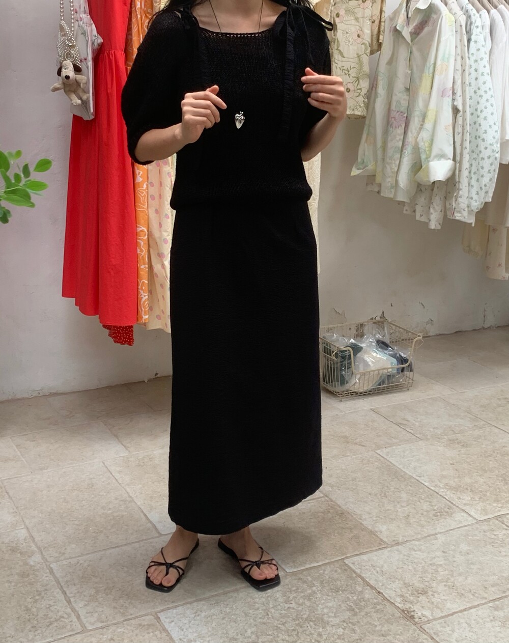 성근 짜임으로 스킨 컬러와 대비되어 비침이 느껴집니다