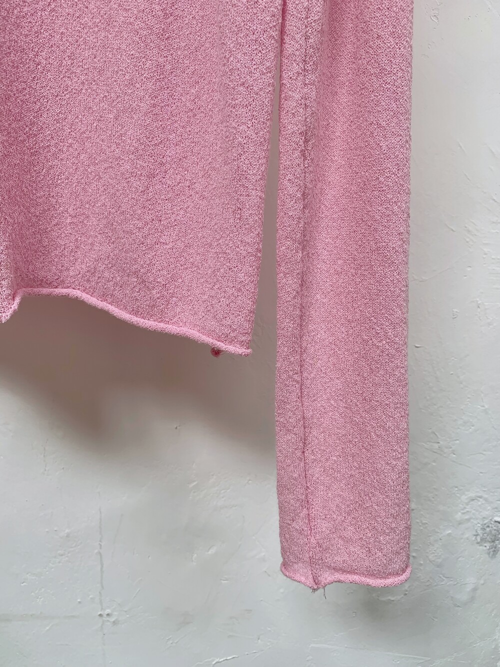네크라인, 밑단과 소매끝은 돌돌 말리는 느낌으로 귀여우면서도 자연스러운 무드를 더해주었습니다