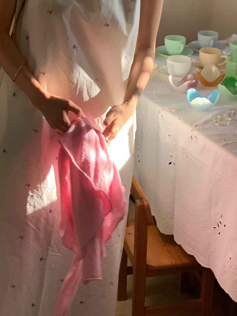 여름에도 뜨거운 햇빛이나 차가운 에어컨 바람을 막아줄 수 있게 긴소매로 만들었어요