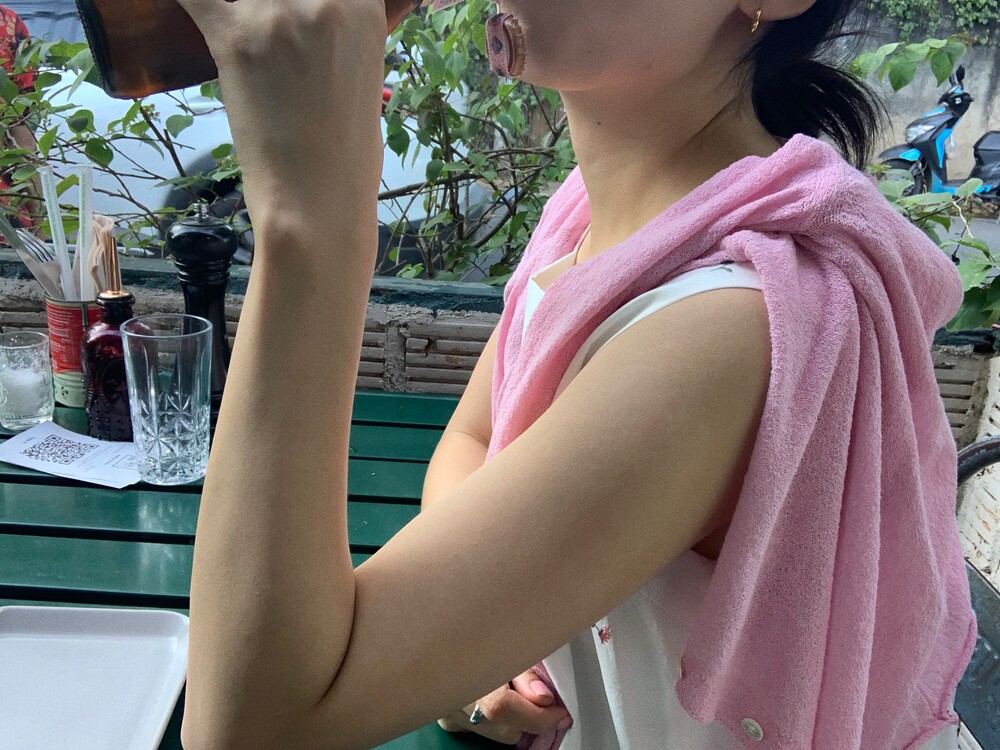 아주 가볍고, 타올처럼 보송보송한 촉감이에요.