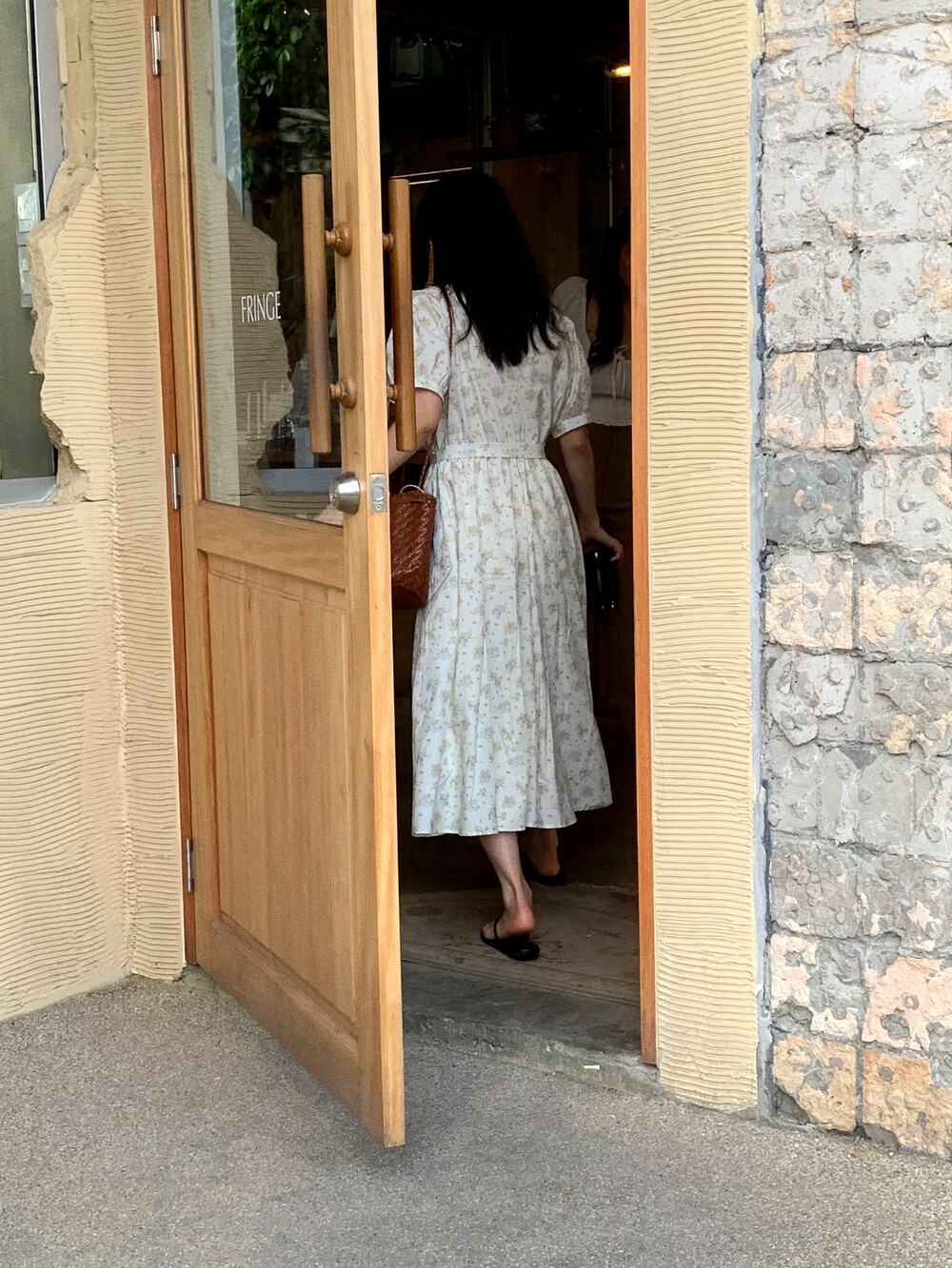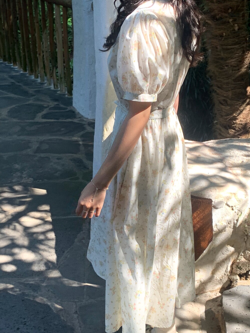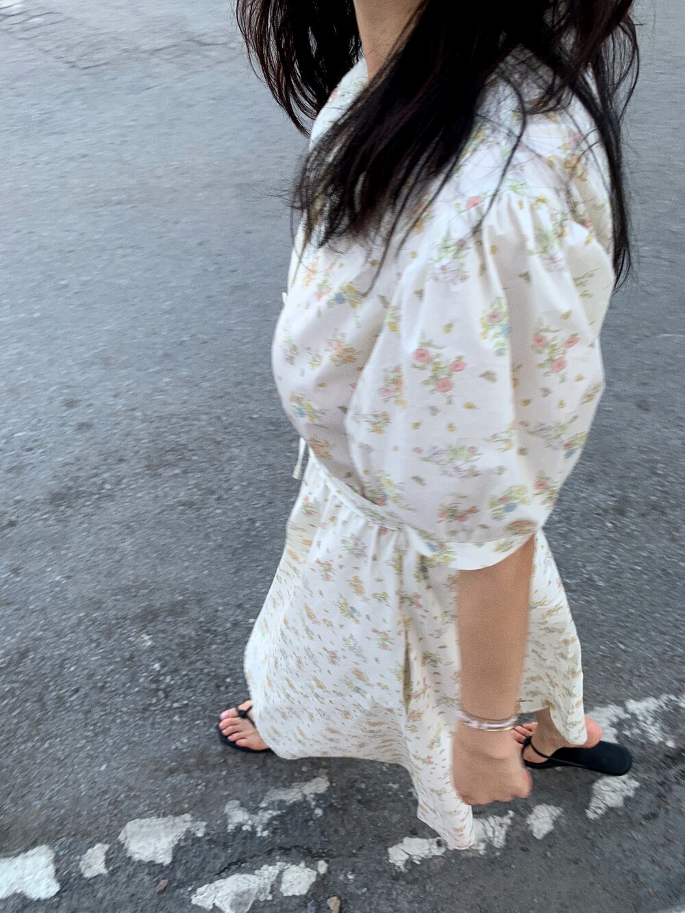 볼륨을 잡아준 퍼프 슬리브는 팔 라인을 자연스럽게 커버해줘요