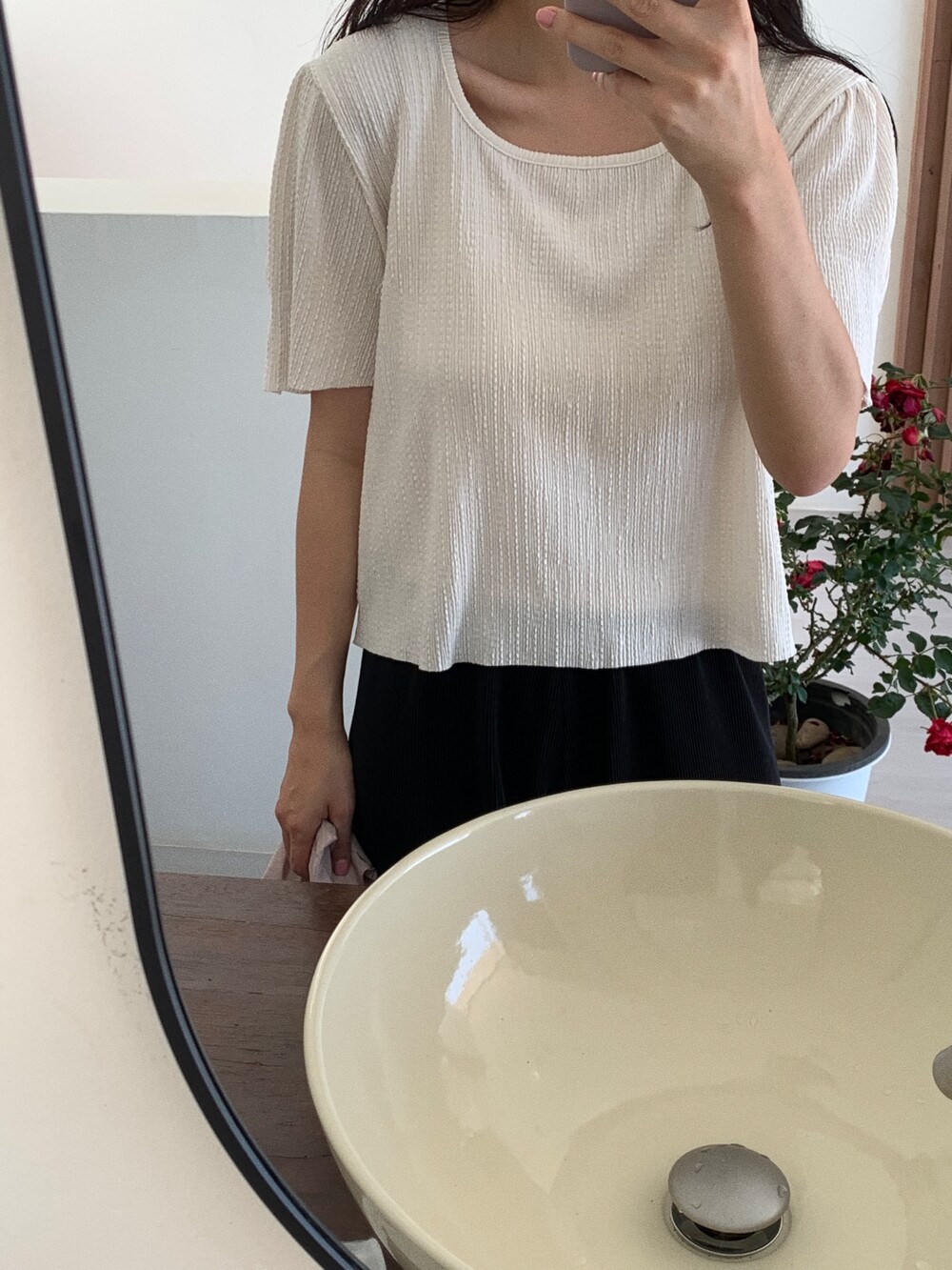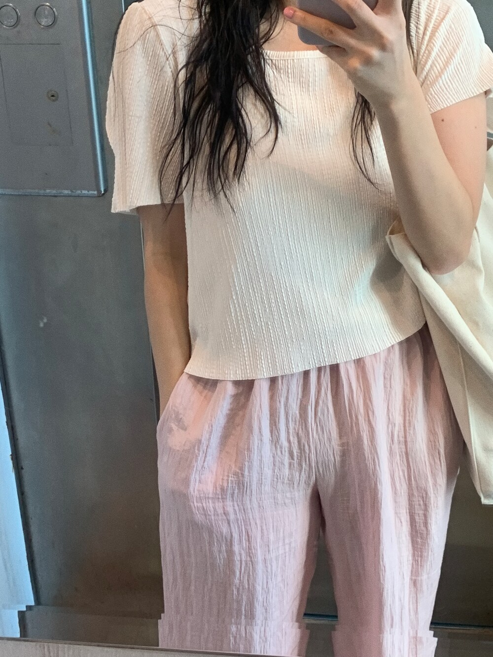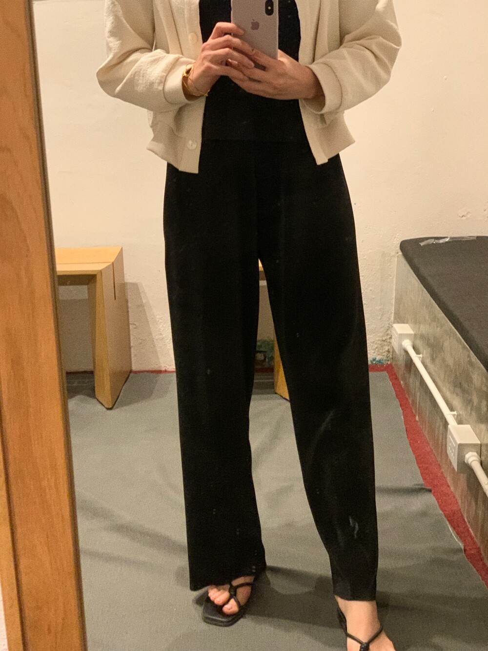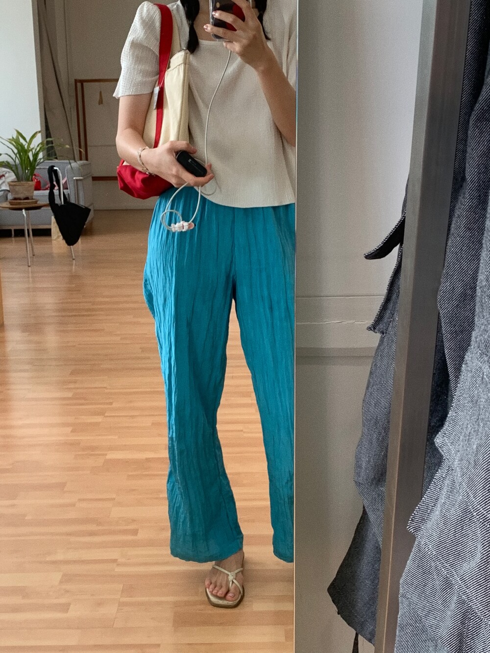 꺼내 입었을 때 허리 밴드나 디테일 부분은 적당히 덮어주고 프로포션이 좋아보여요