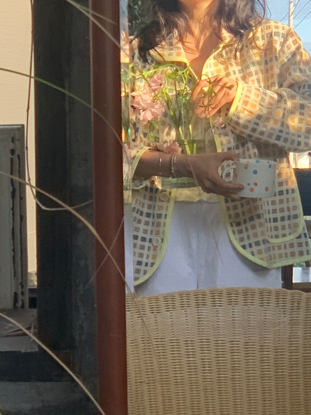 상큼한 레몬 옐로우 컬러의 바이어스로 포인트를 주었어요