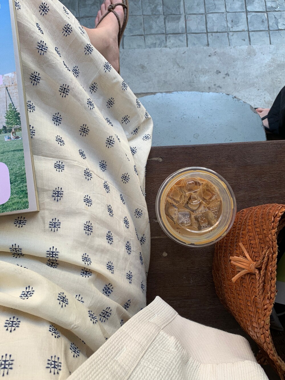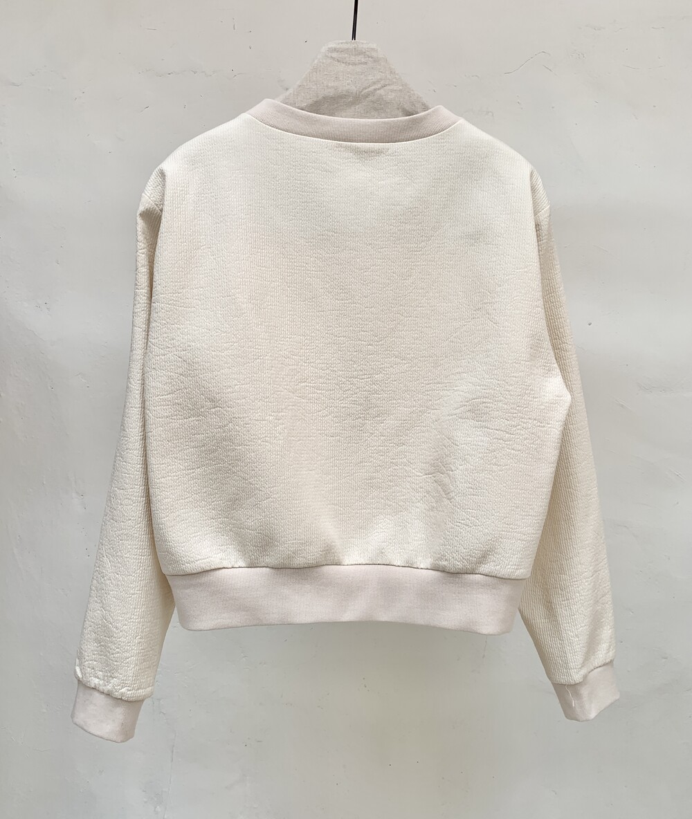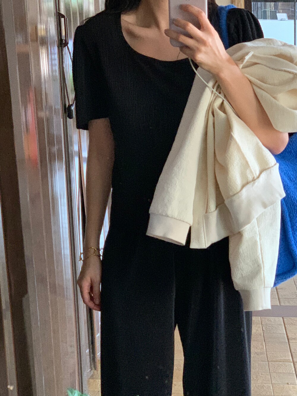 네크와 밑단은 같은 크림 컬러의 립단으로