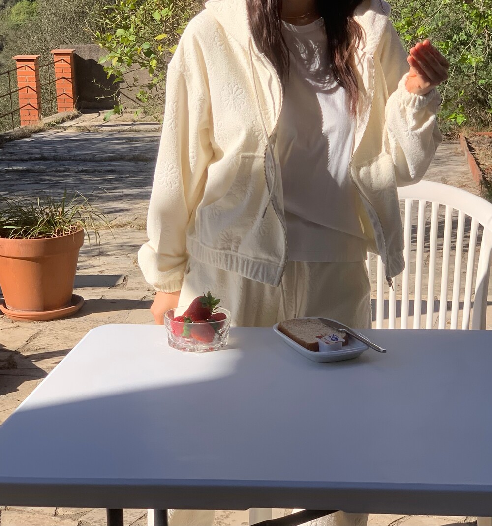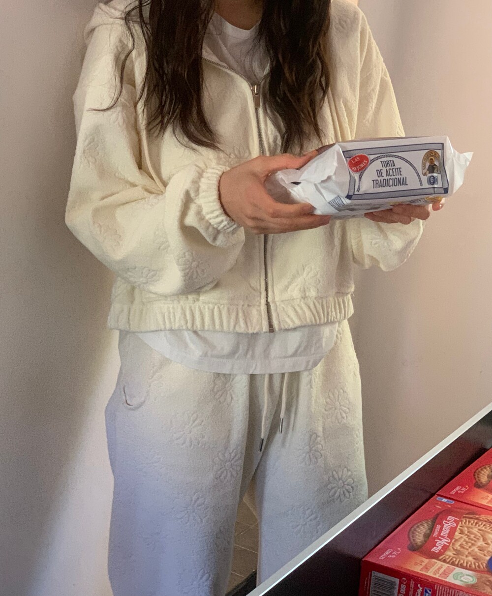 뽀얀 아이보리 컬러로 사랑스러운 플라워 패턴이 빼곡하게 채워져 있어요