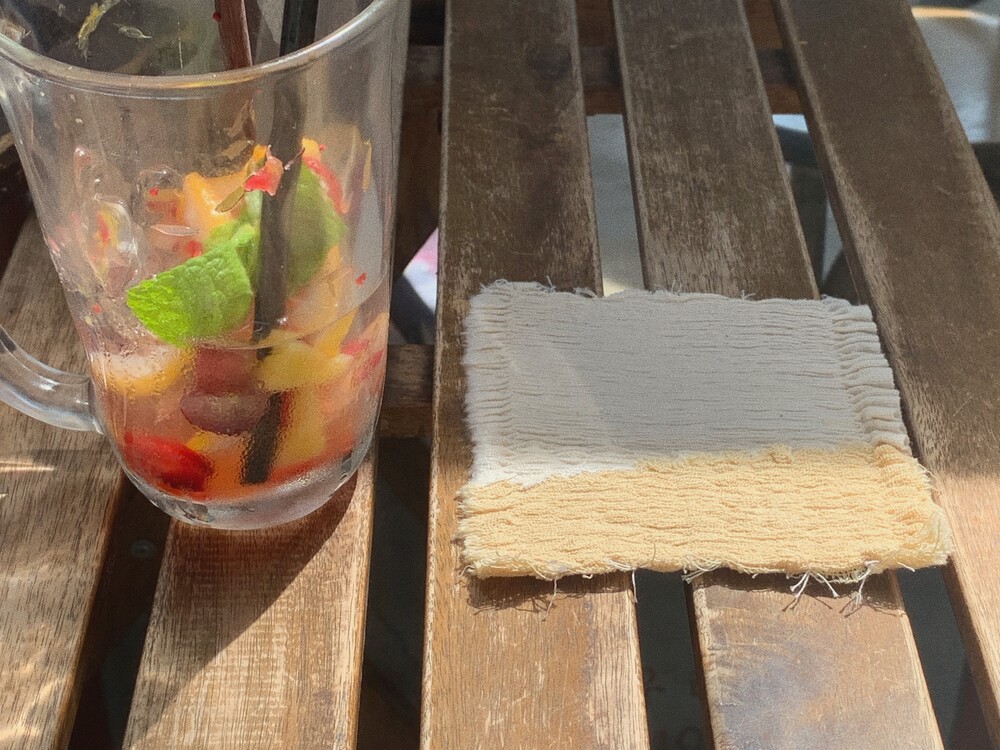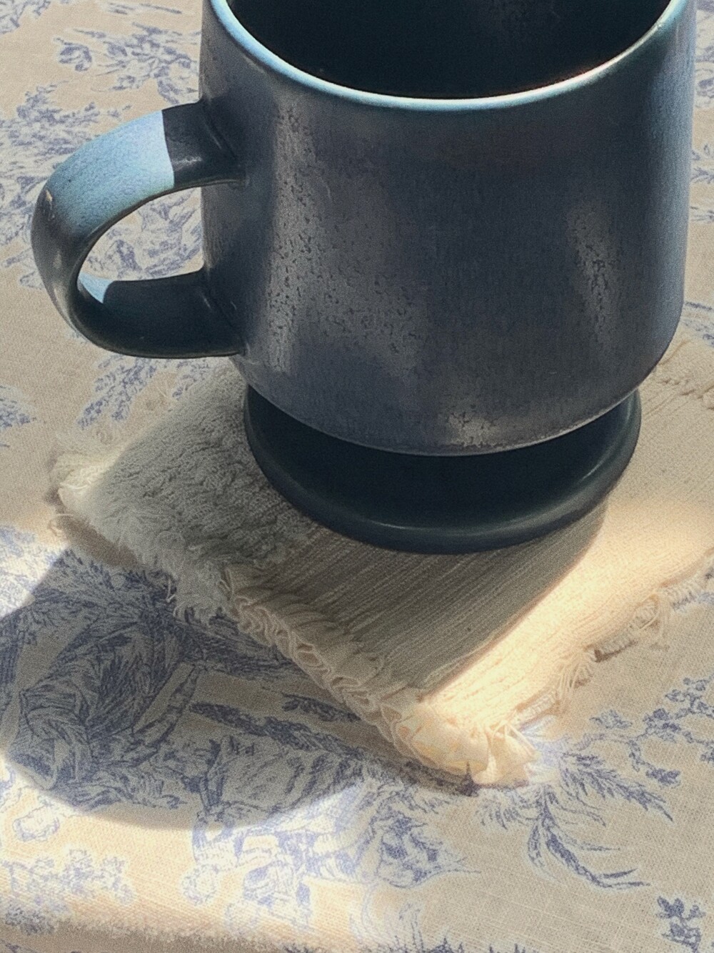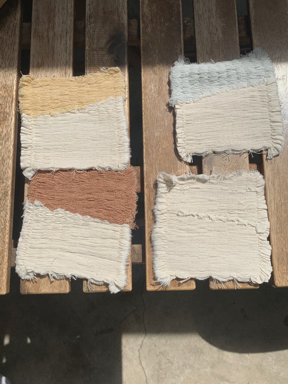 강화 소창과 면 소재의 코스터로 천연 염색 후 주름을 잡은 제품입니다.