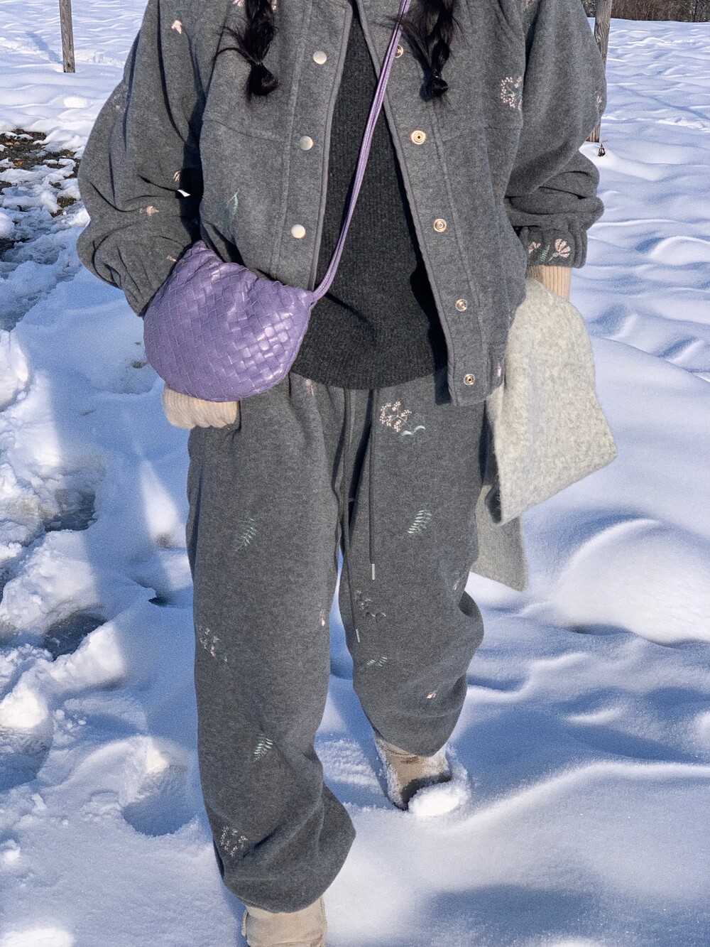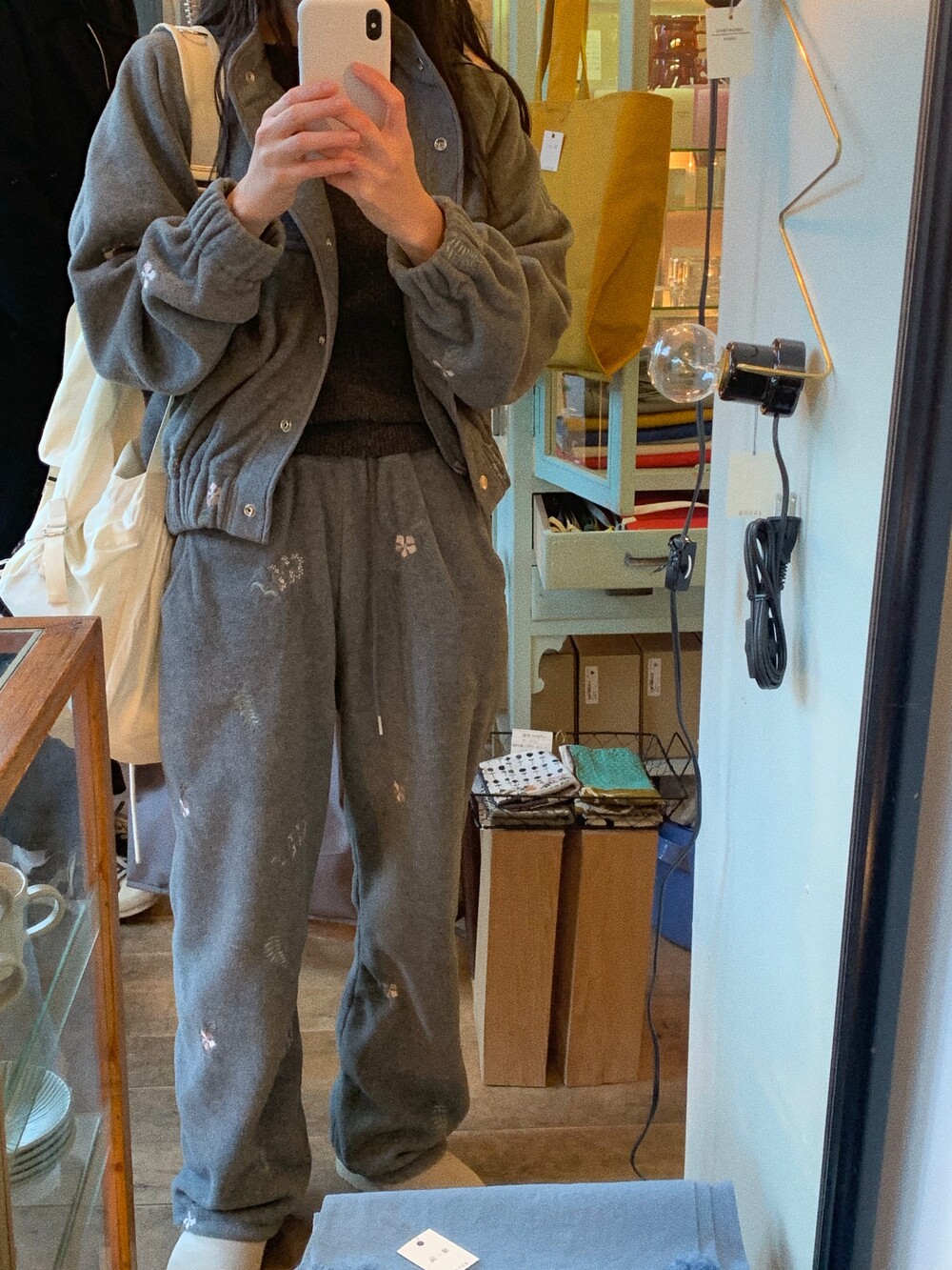 그레이 바탕과 자수의 핑크&민트 컬러가 은은하게 어울리더라구요