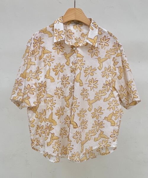 인도 패브릭 셔츠 - 노랑