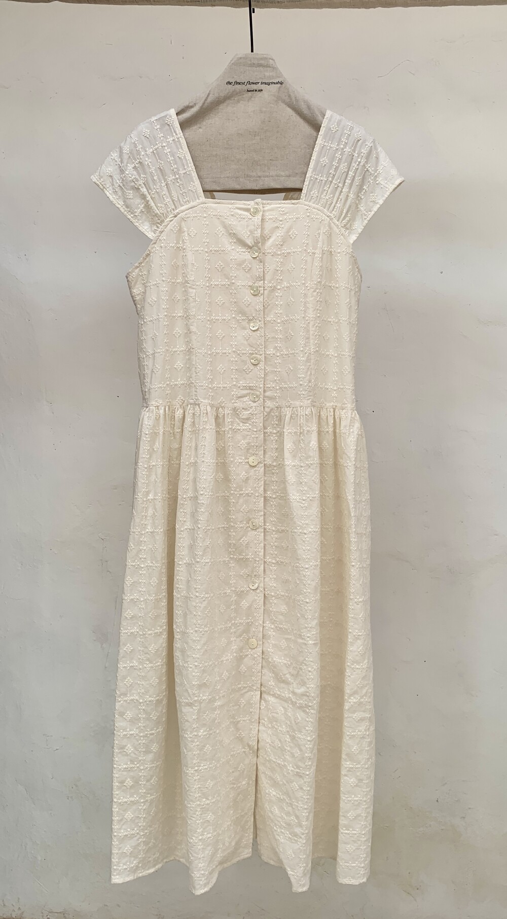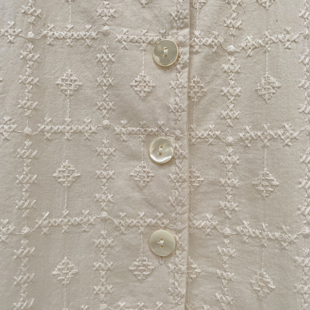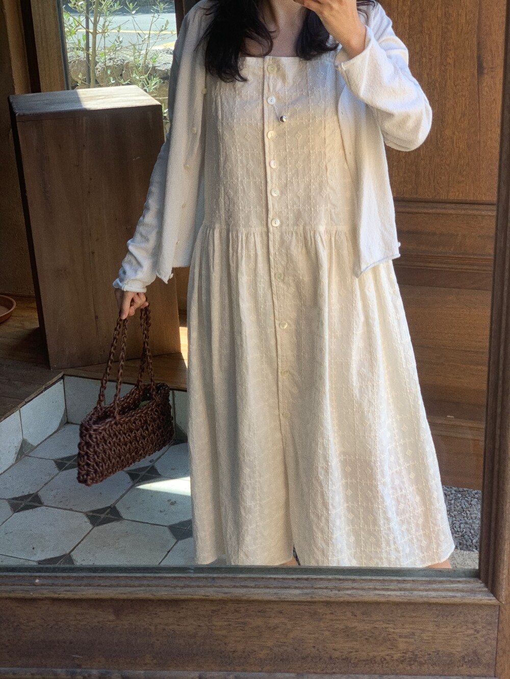 자수실과 원단 모두 에크루 컬러로 네추럴한 분위기가 가득합니다