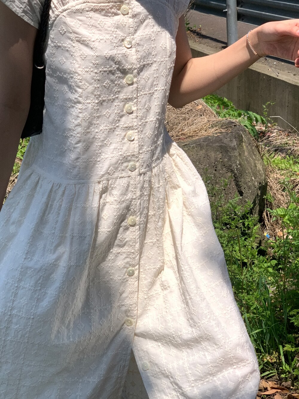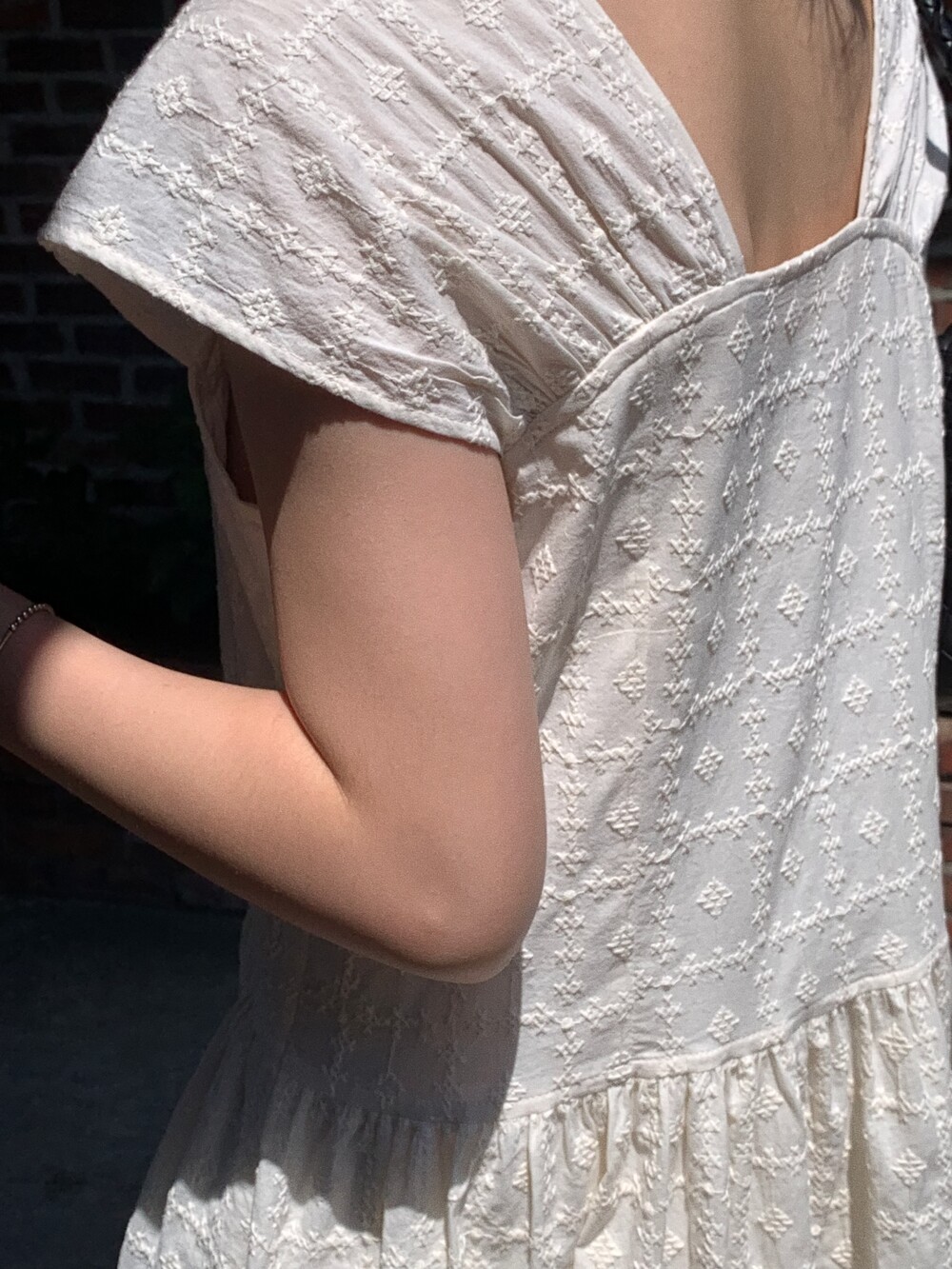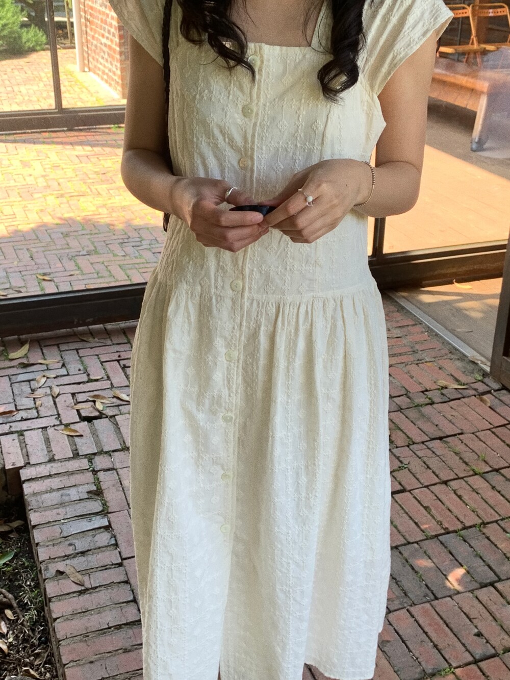 자수실과 원단 모두 에크루 컬러로 네추럴한 분위기가 가득합니다