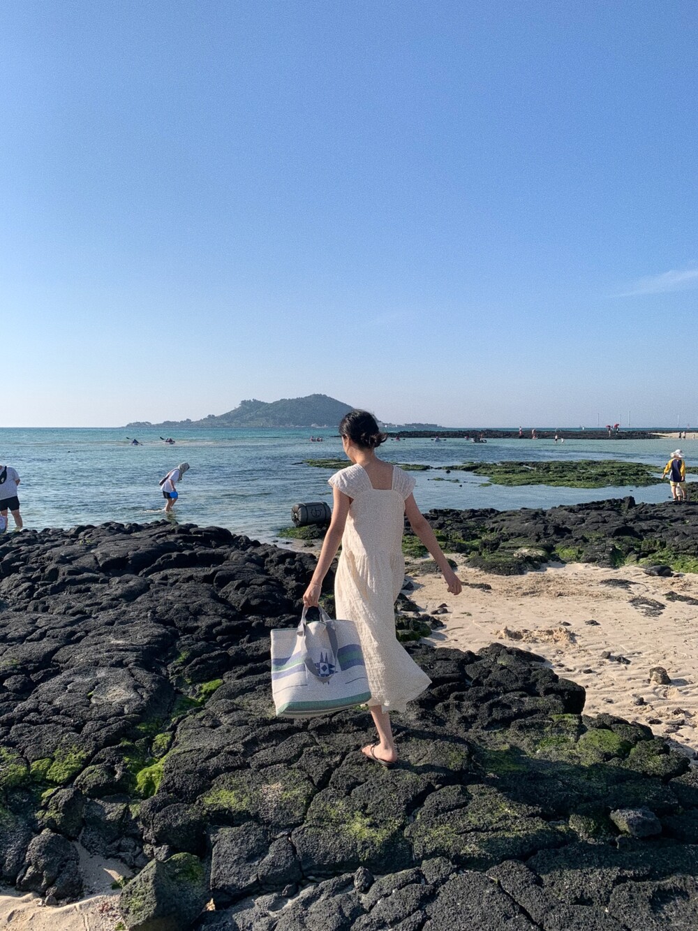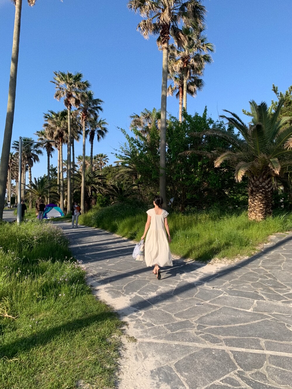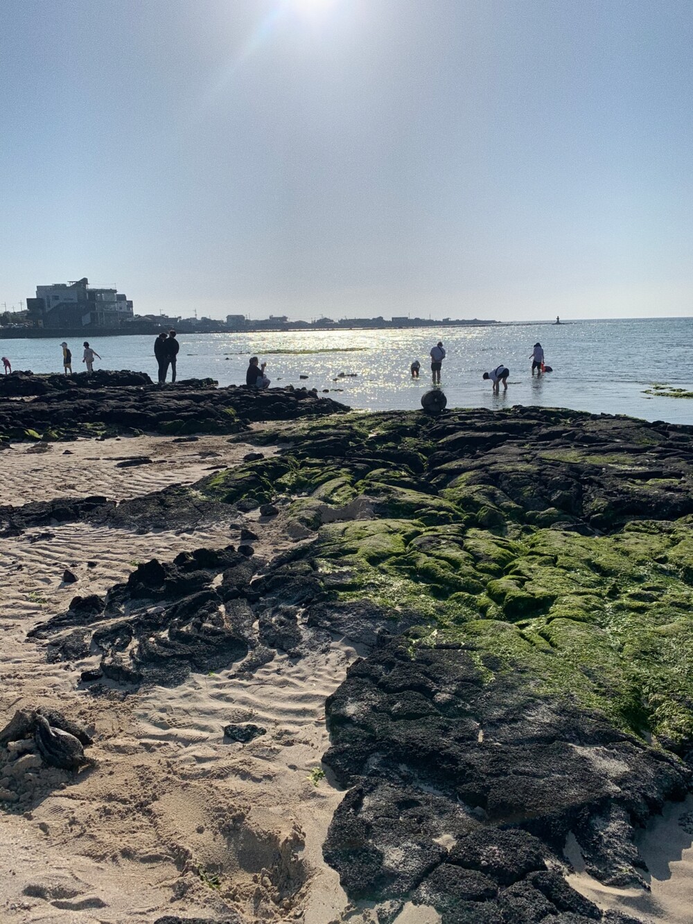 푸르른 여름의 초원, 반 짝 반짝 모래알이 있는 바닷가,