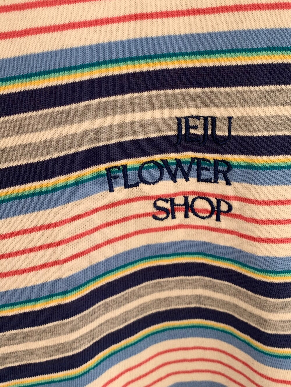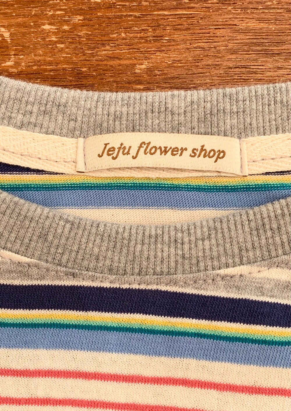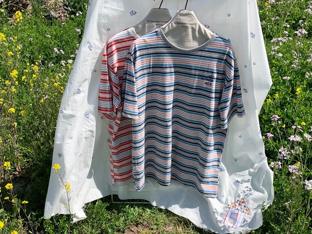 가슴 부분에는 JEJU FLOWER SHOP 톤온톤 자수로 그꽃의 무드를 더해주었습니다.