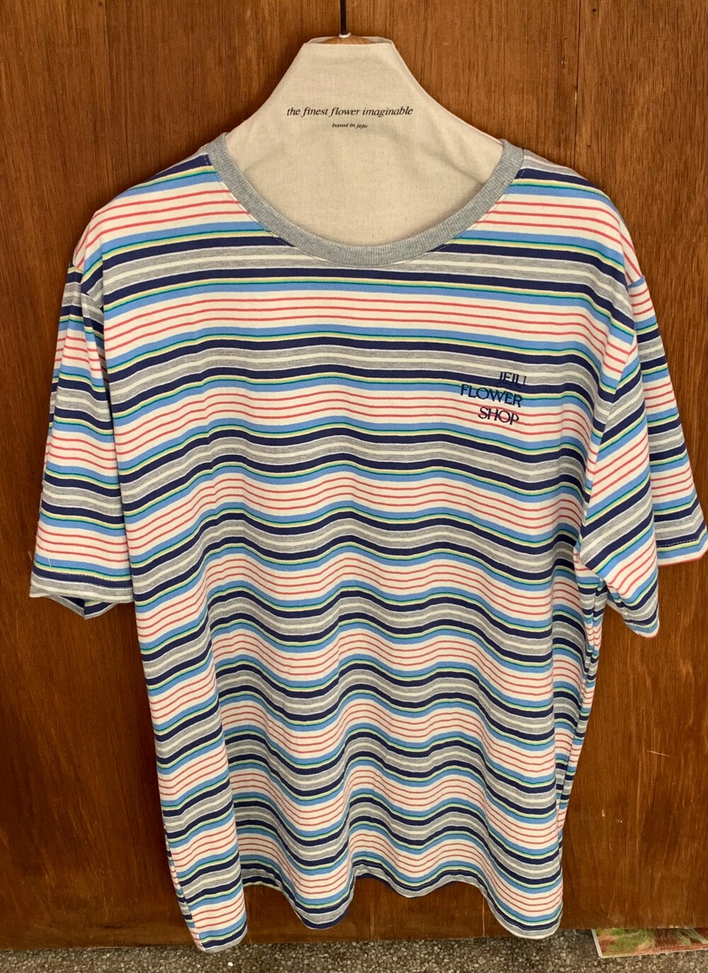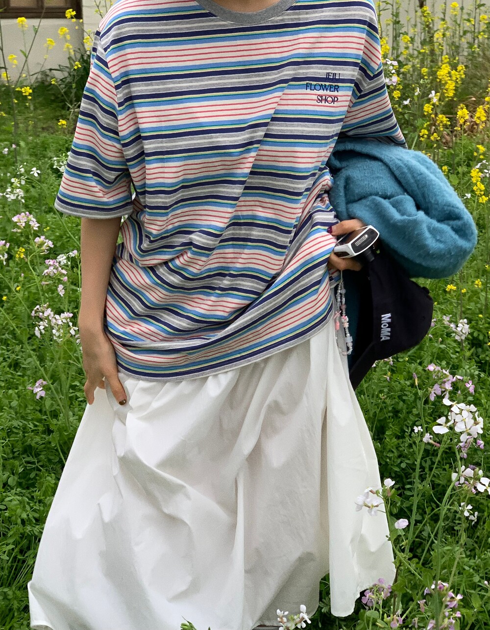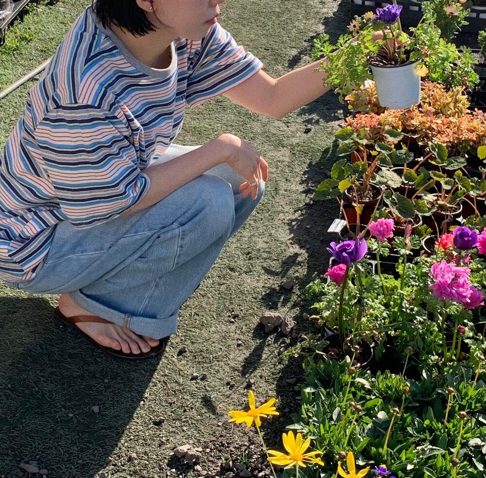 가슴 부분에는 JEJU FLOWER SHOP 톤온톤 자수로 그꽃의 무드를 더해주었습니다.