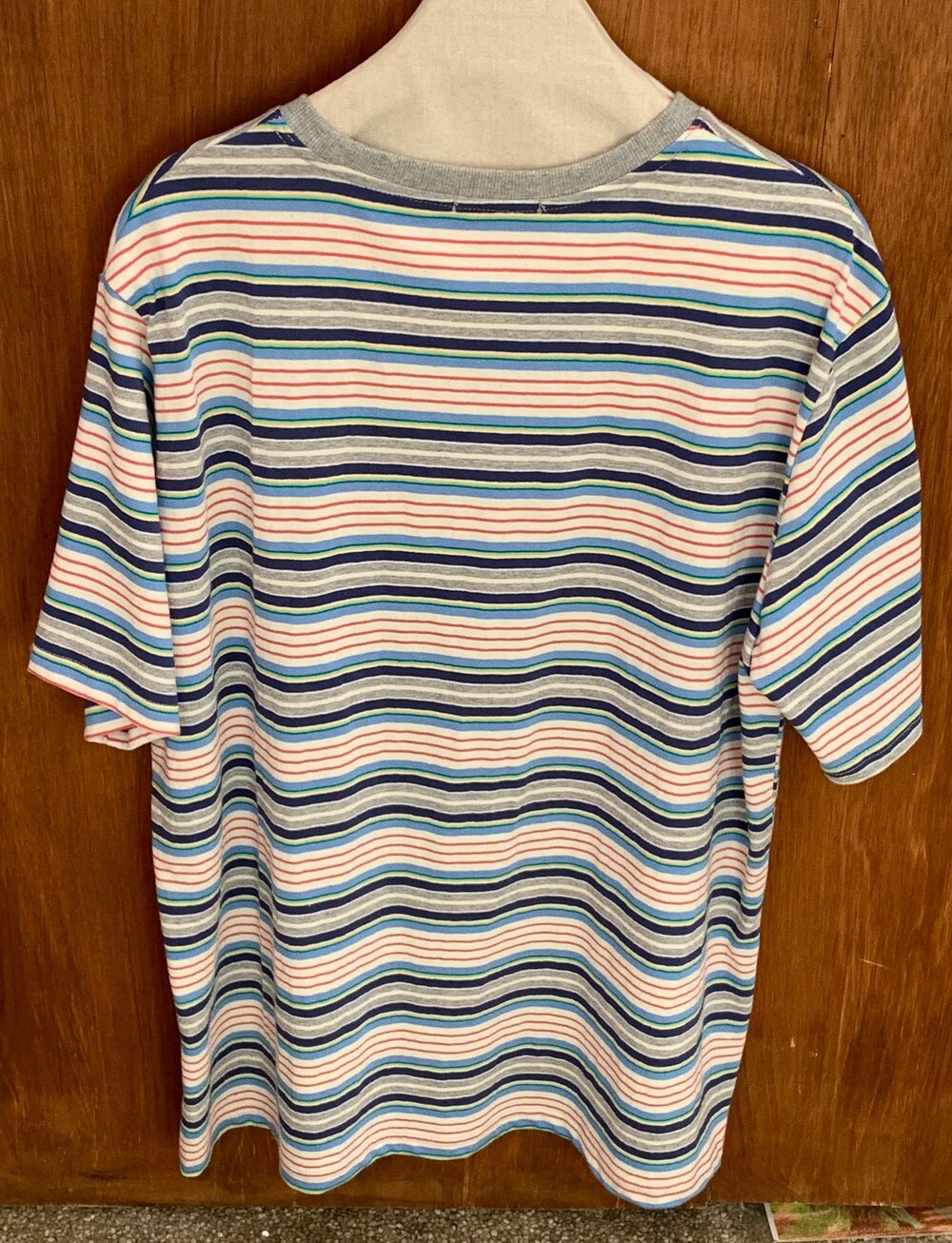 그레이 바탕 위에 핑크, 블루가 믹스된 멀티 스트라이프 패턴으로 구성된 컬러입니다.