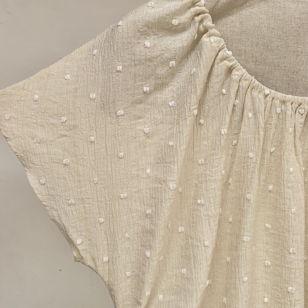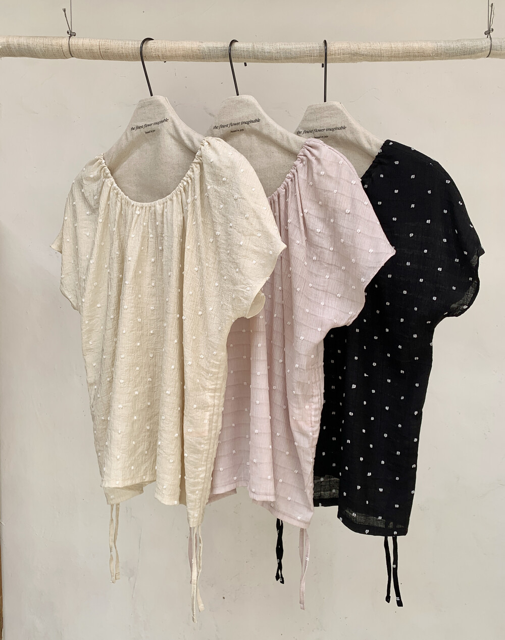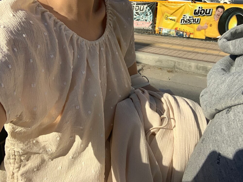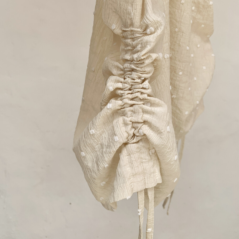 가볍고 얇은 링클 소재에 눈송이처럼 귀여운 도트 패턴이 입체적으로 올라가 있어요