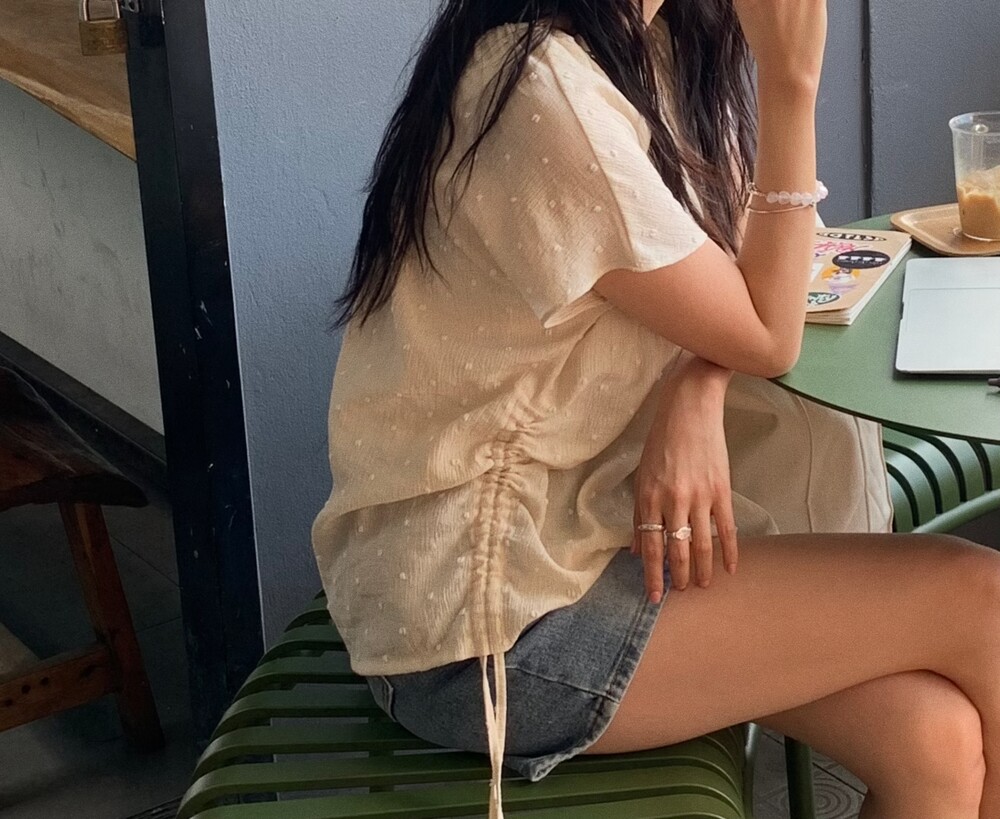 스트링을 조이면 허리 부분에 셔링이 생겨요