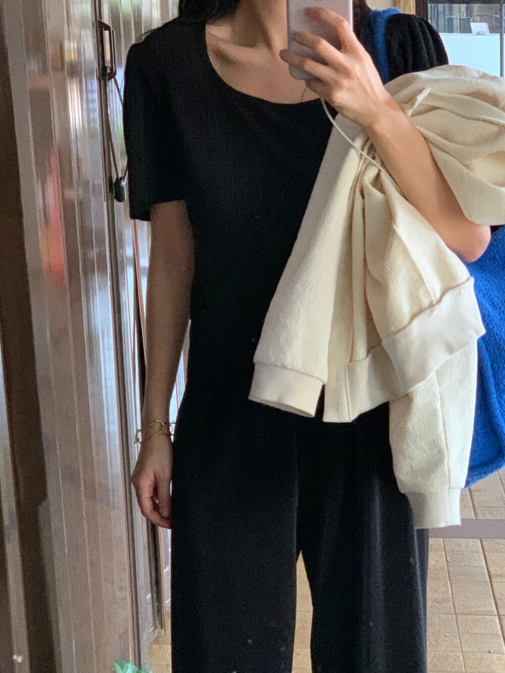 시원하면서도 적당히 두께감이 있어 몸의 실루엣이 많이 드러나지 않아요