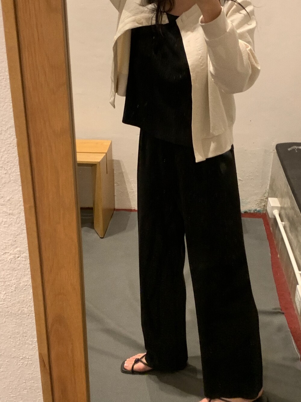 군더더기없이 일자로 떨어지는 핏이에요