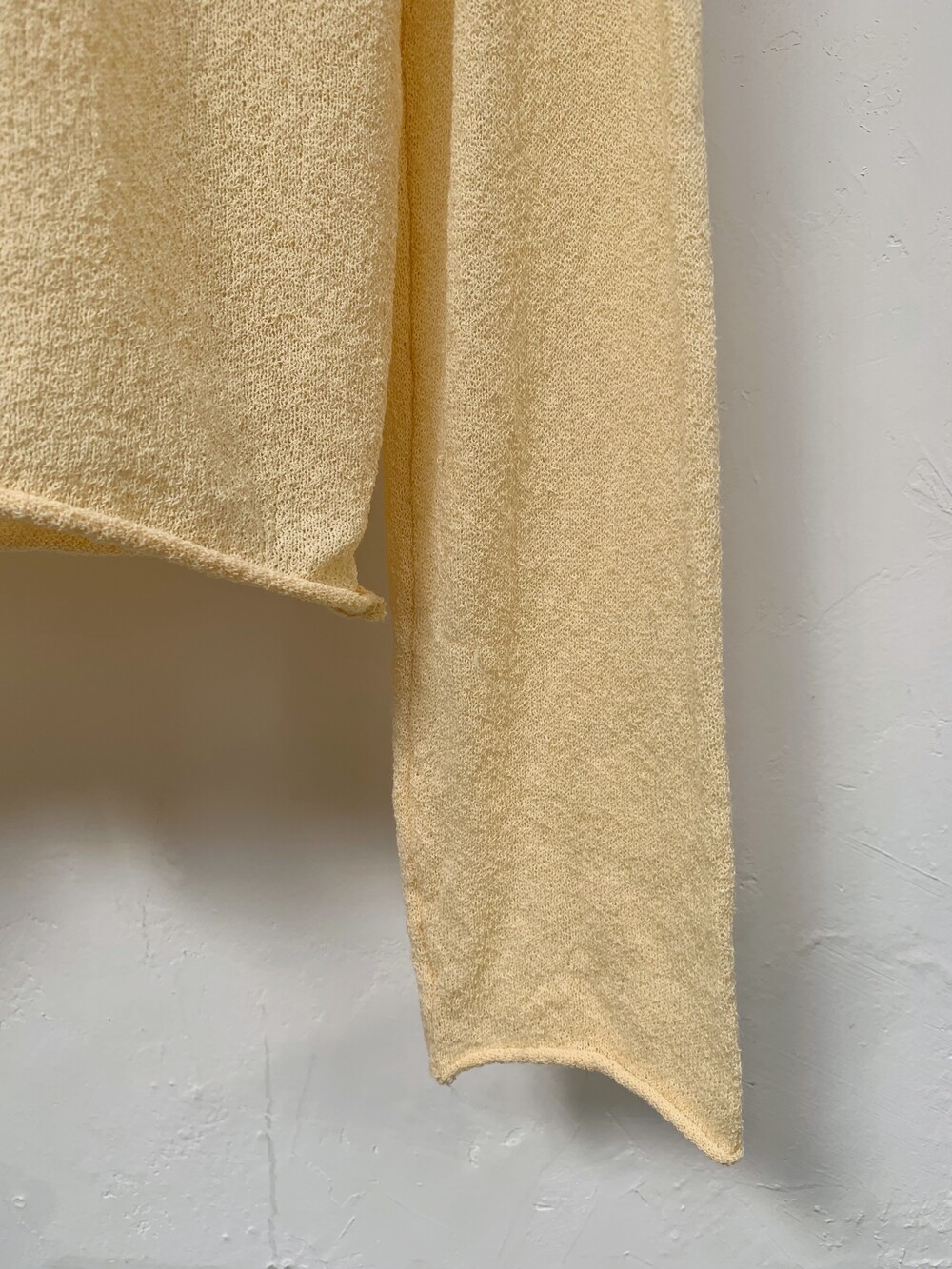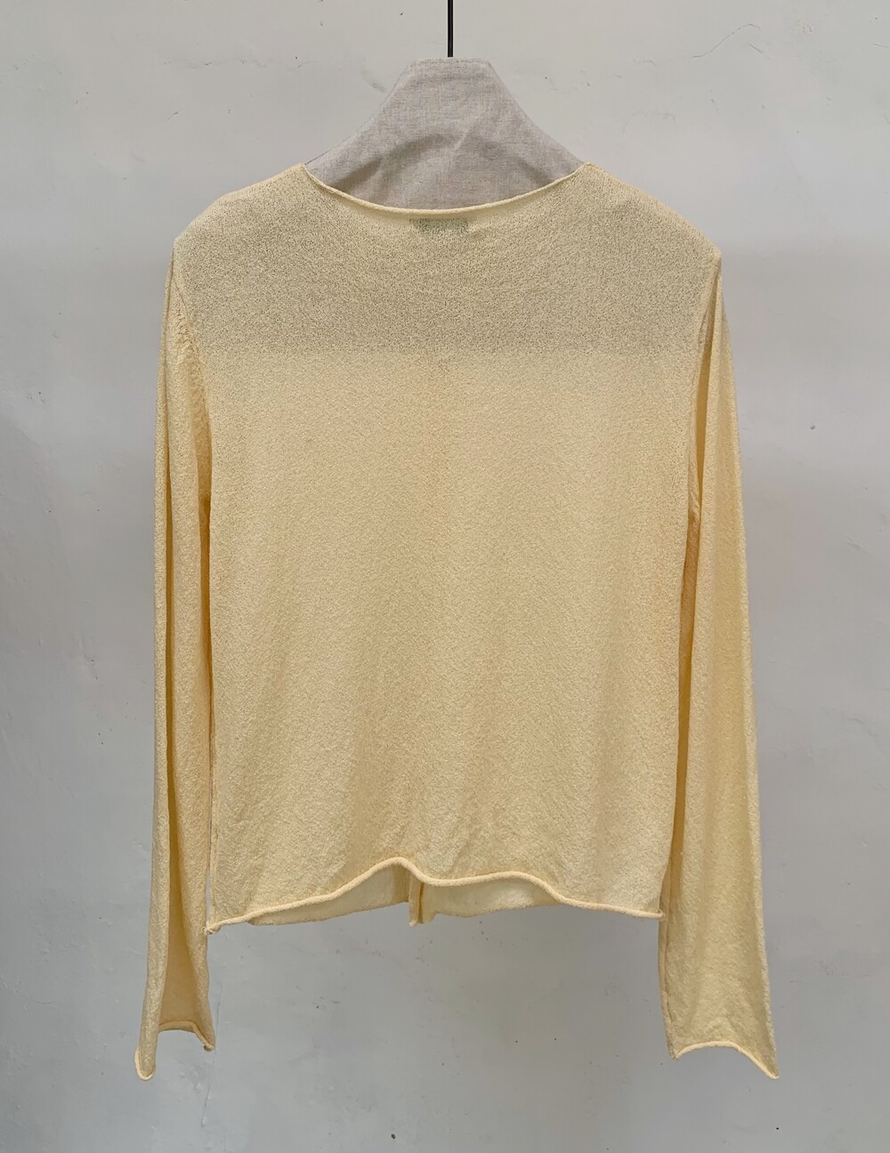 네크라인, 밑단과 소매끝은 돌돌 말리는 느낌으로 귀여우면서도 자연스러운 무드를 더해주었습니다