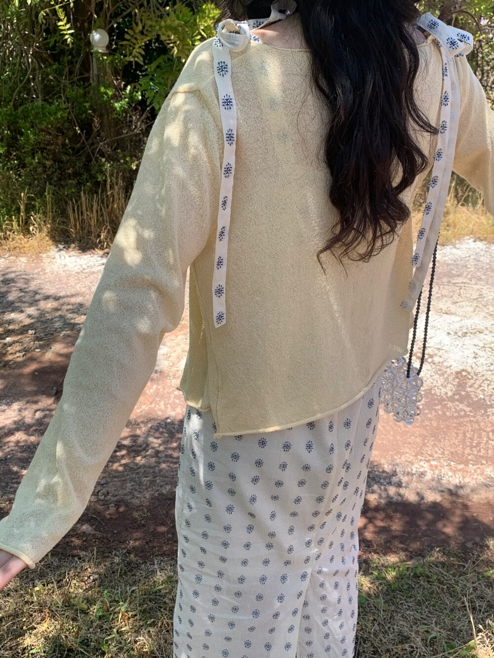 여름에도 뜨거운 햇빛이나 차가운 에어컨 바람을 막아줄 수 있게 긴소매로 만들었어요