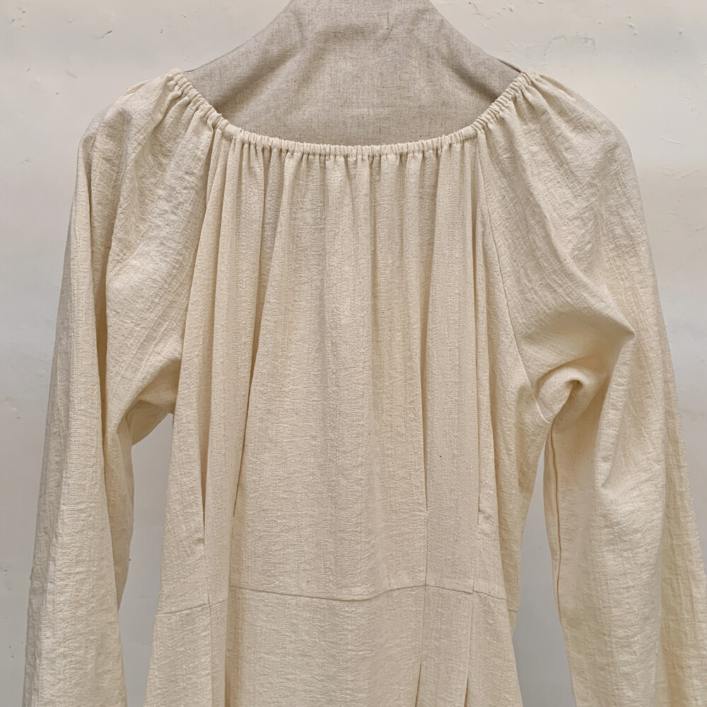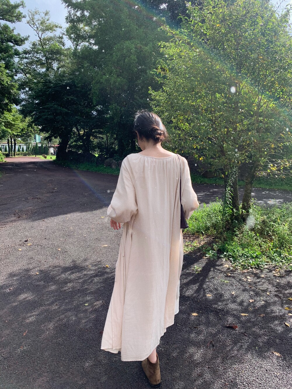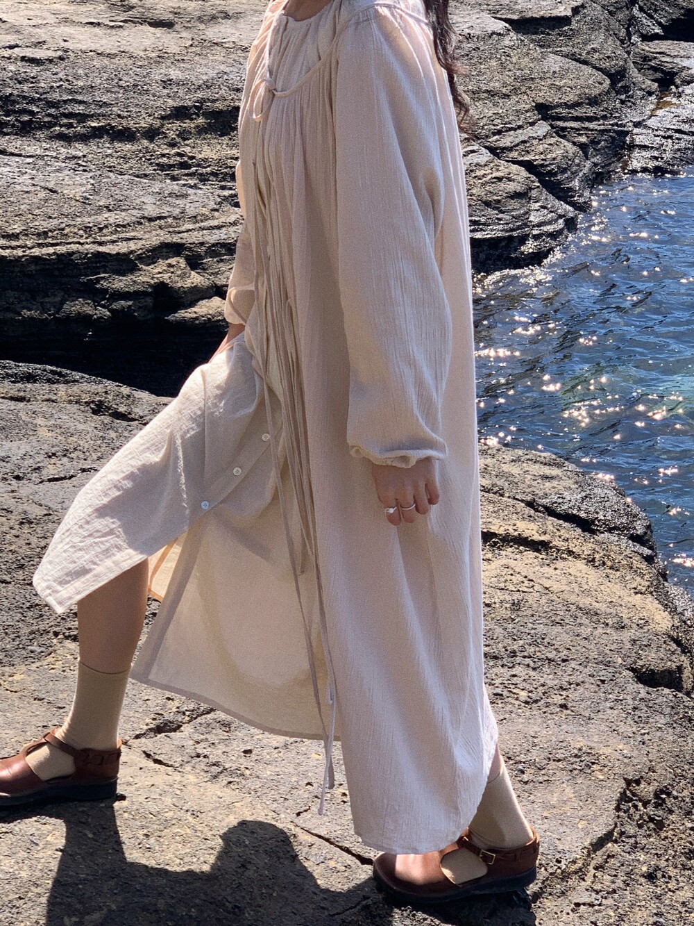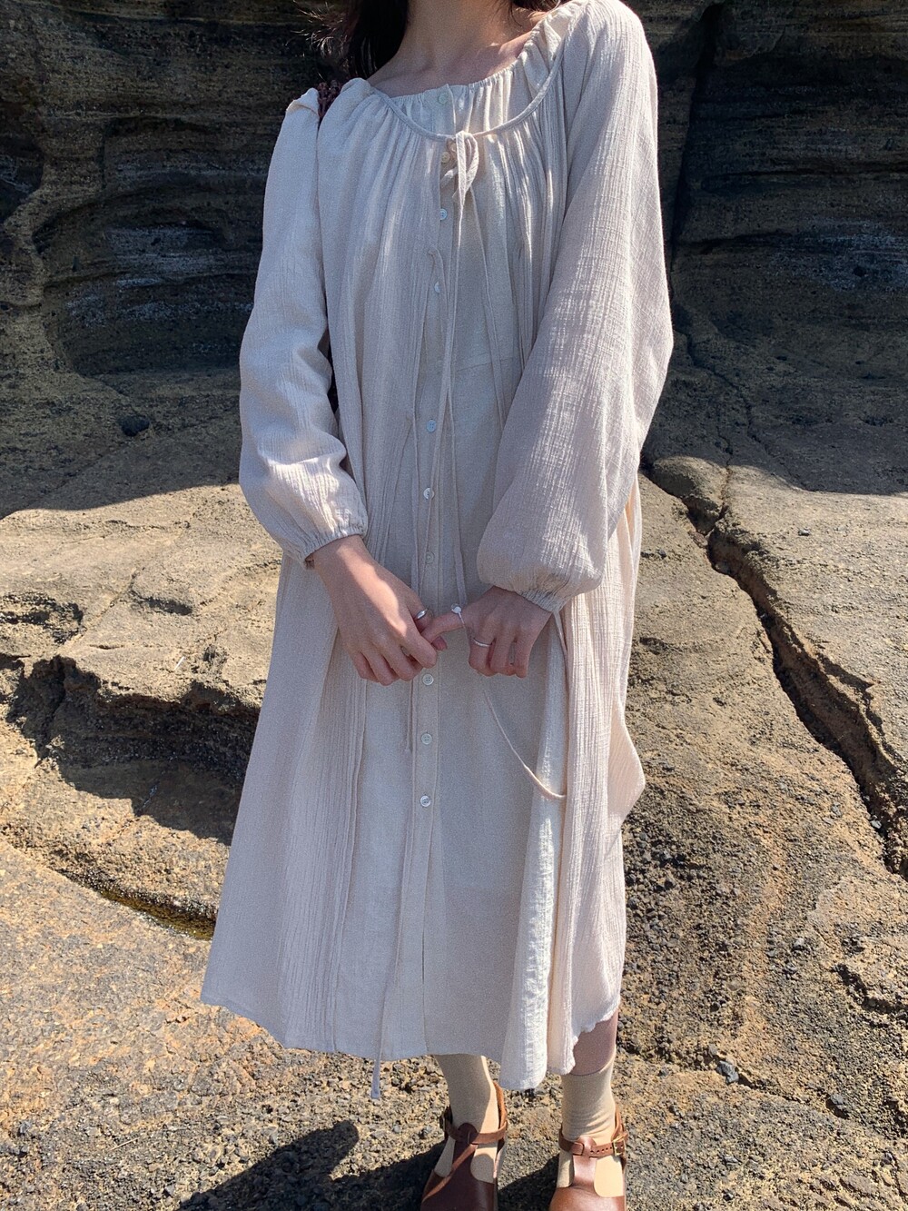 네크라인과 슬리브 끝부분은 얇은 폭의 밴드를 넣어 잔잔하게 셔링이 잡혀요