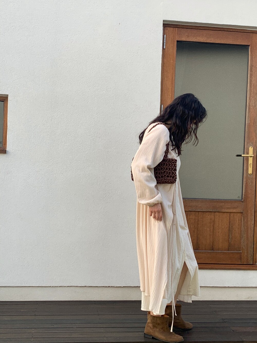 색이 밝은 편이라 비침이 신경쓰이신다면 스킨톤의 이너나 슬립과 함께 착용하시기를 권장합니다.