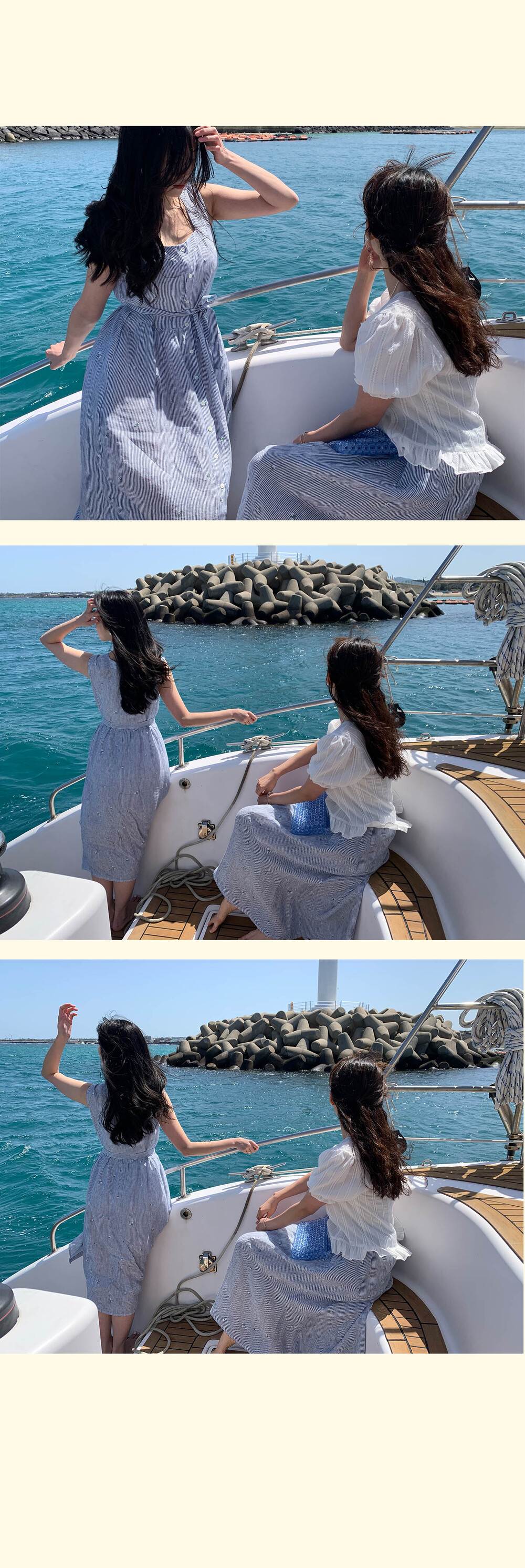 블루 컬러의 클래식한 선염 스트라이프 패턴에