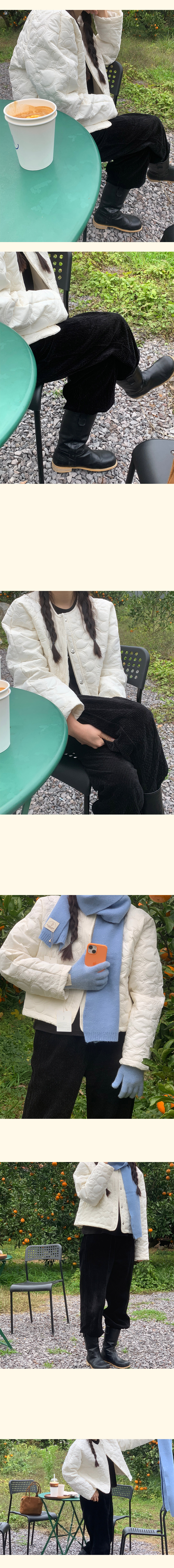 보송보송한 느낌이 귀여운 코듀로이 소재를 엠보 형태로 변형시켜