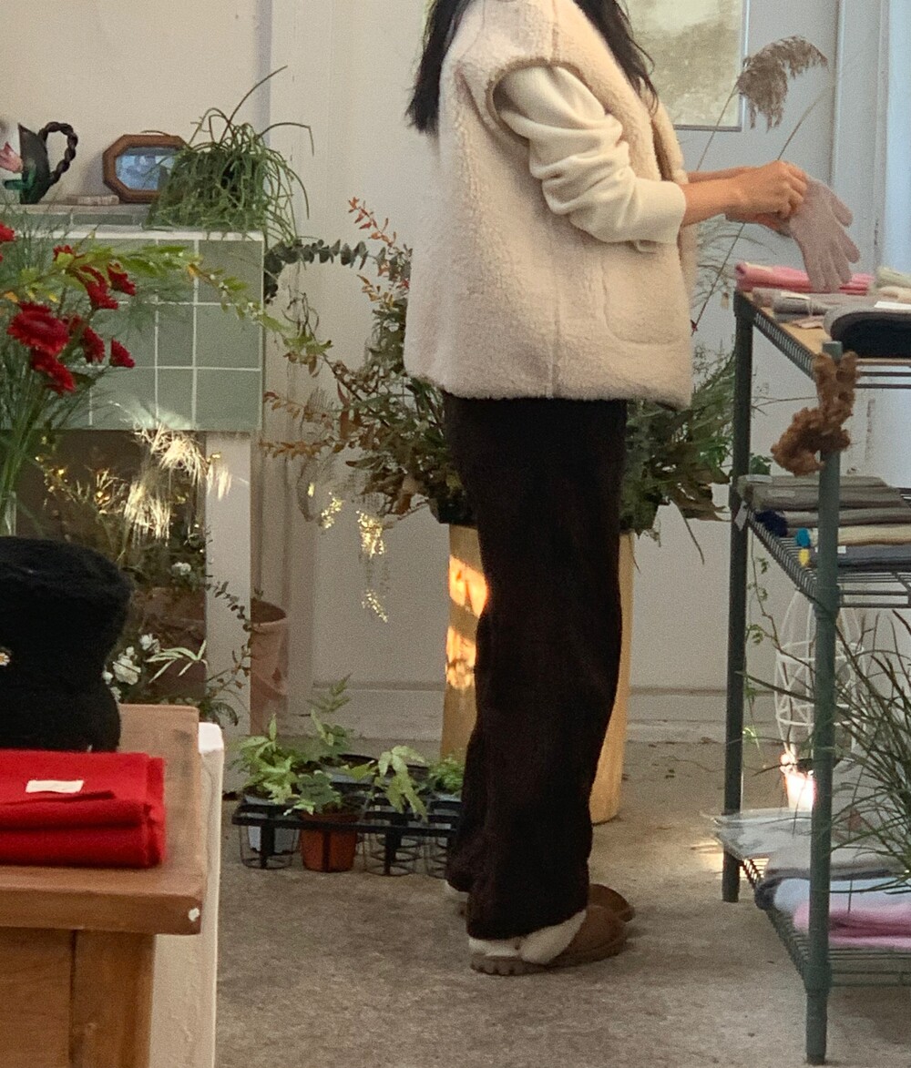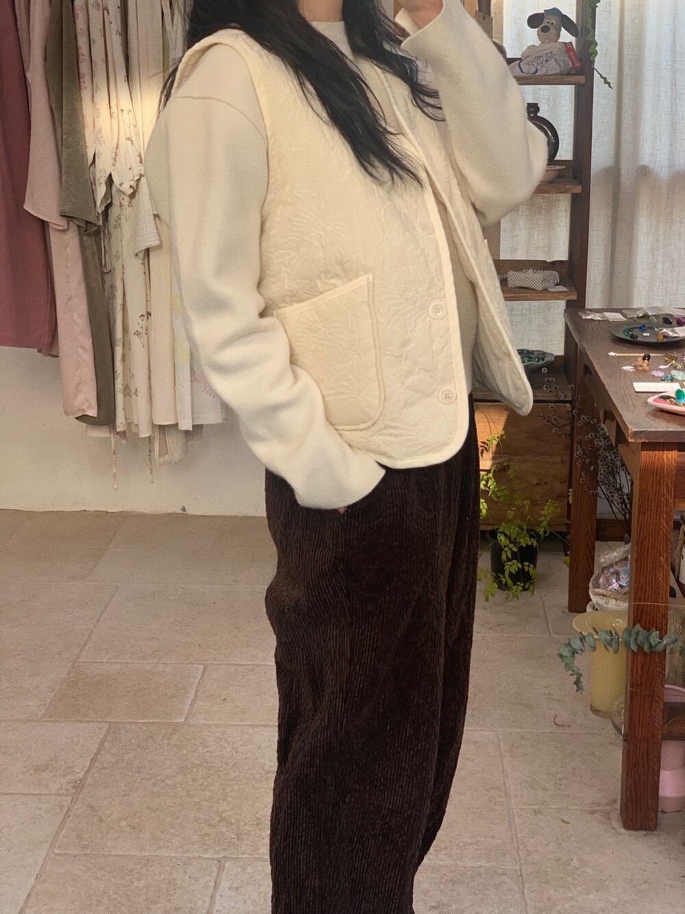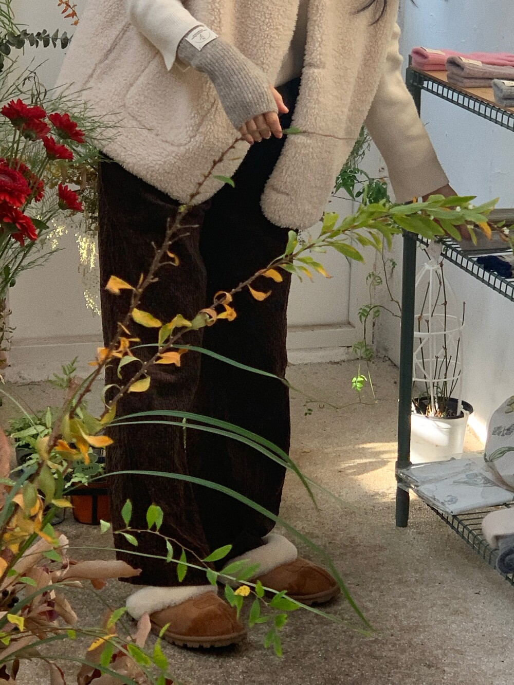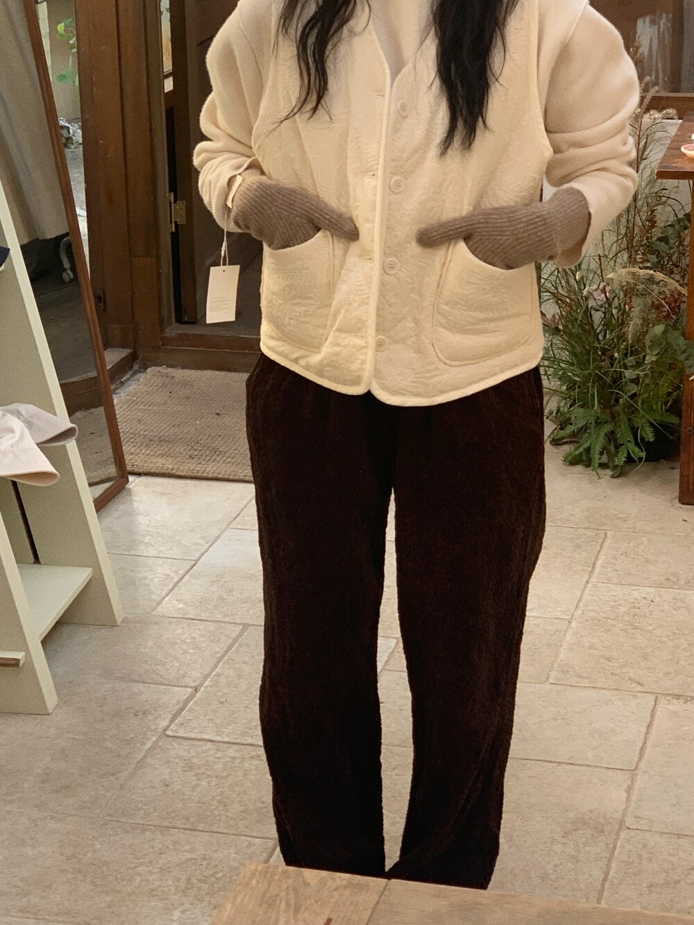 보송보송한 느낌이 귀여운 코듀로이 소재를 엠보 형태로 변형시켜 흐르는 멋을 원단에 담았어요.