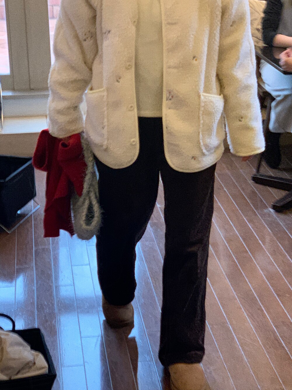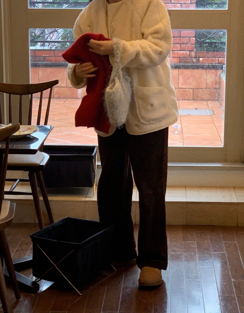 낙낙한 통으로 바디라인이 잘 드러나지 않고 추운 계절을 감안하여 길이도 여유있게 만들었어요