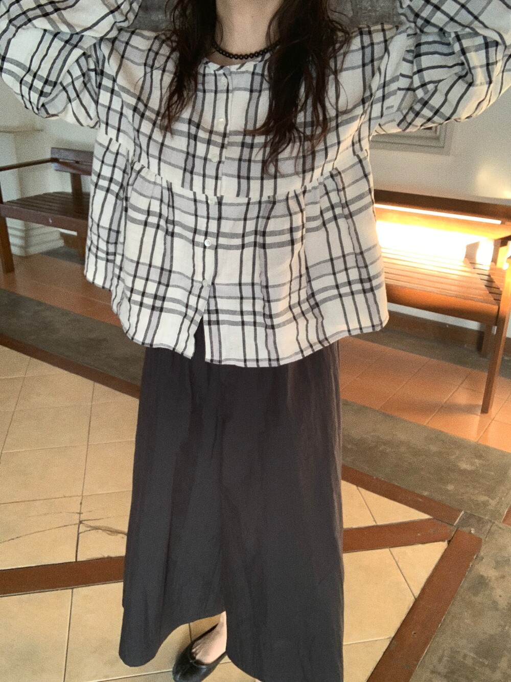 [Italy fabric] 체크 린넨 블라우스와 함께