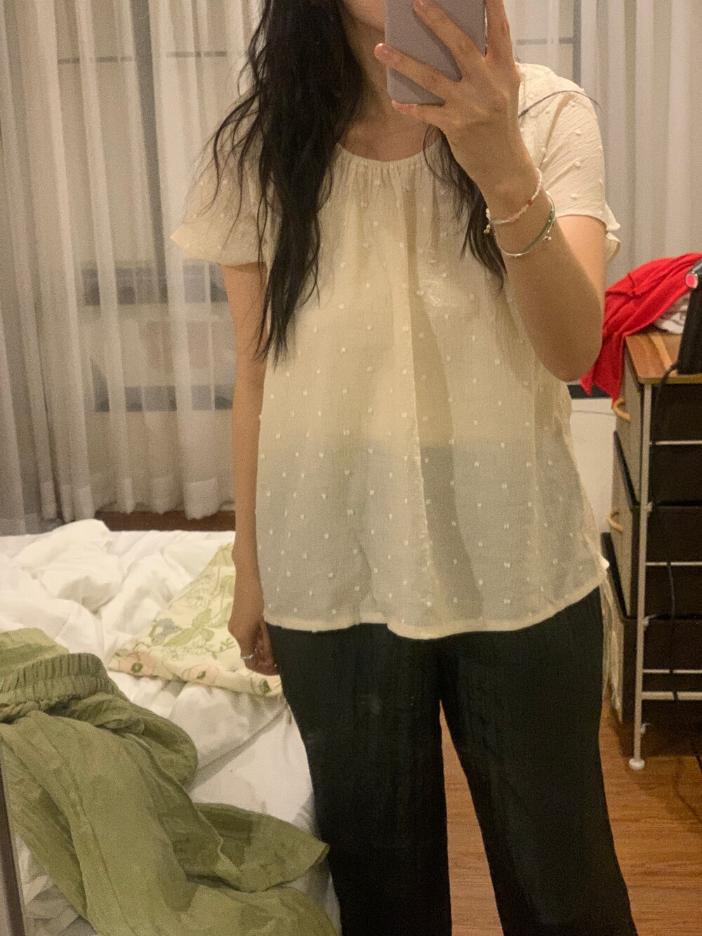오늘 입고 세탁하면 다음날 입을 수 있는 얇고 가벼운 소재여요.