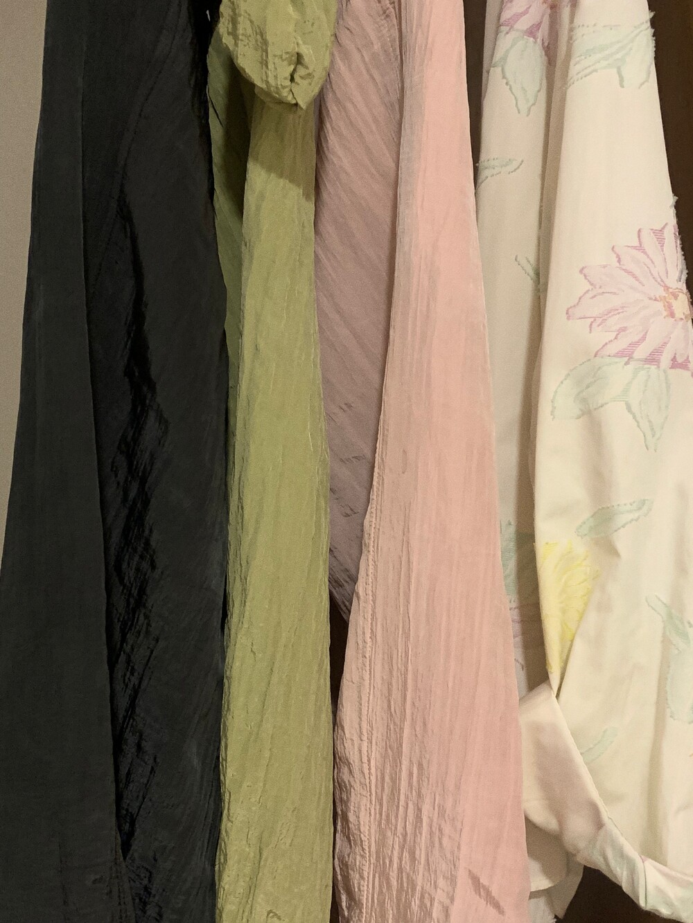 원단 자체에 자연스러운 주름이 있어 구김 걱정이 덜한 것도 장점이에요