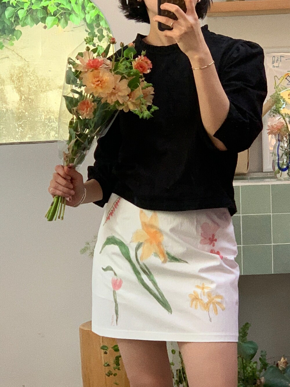 여러 가지의 입체적인 자수가 단조롭지 않고 사랑스러운 분위기를 연출해줍니다
