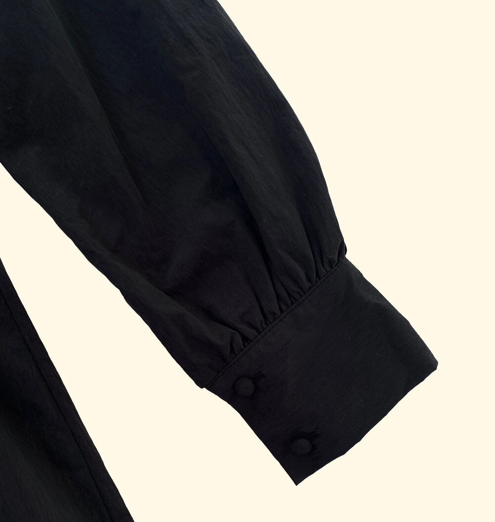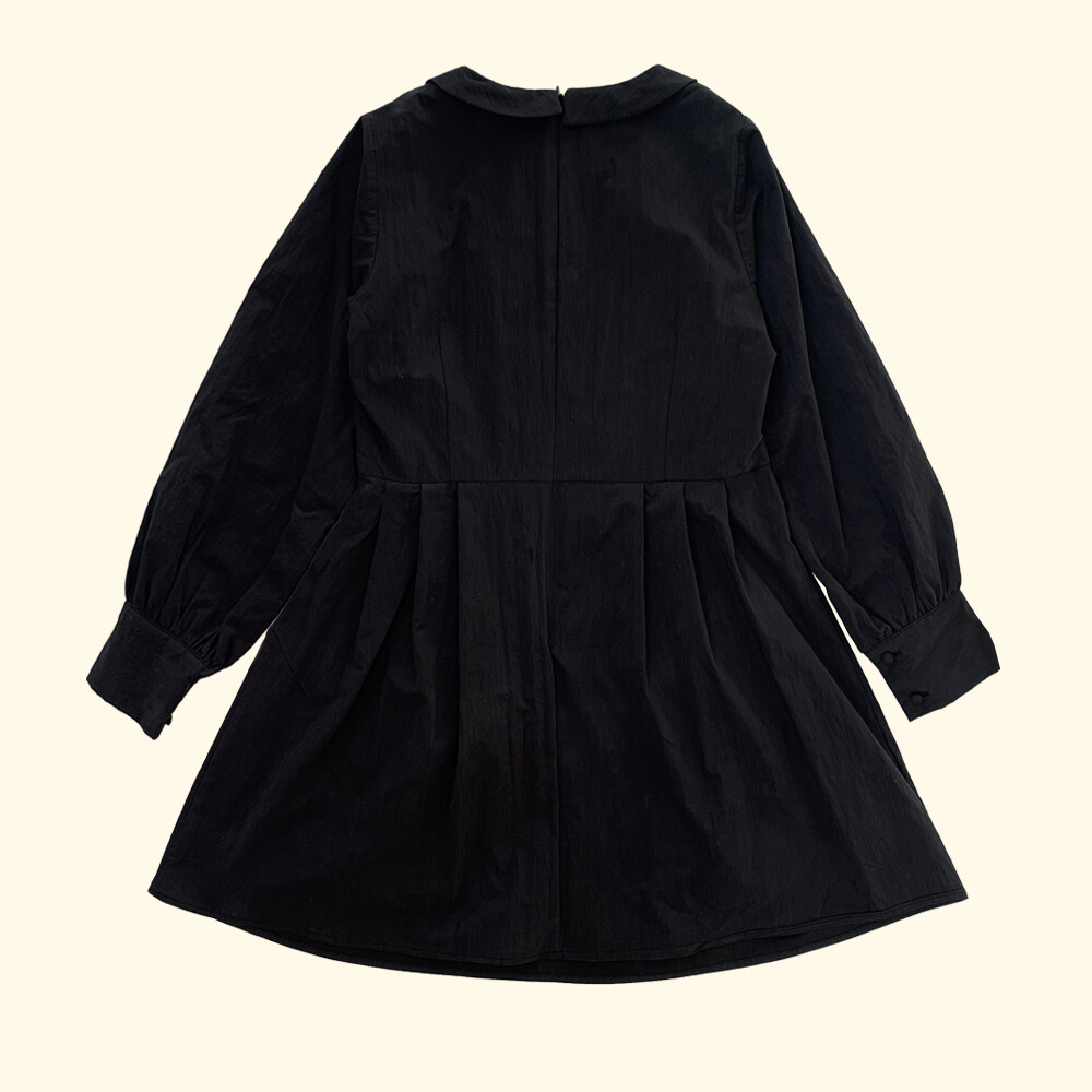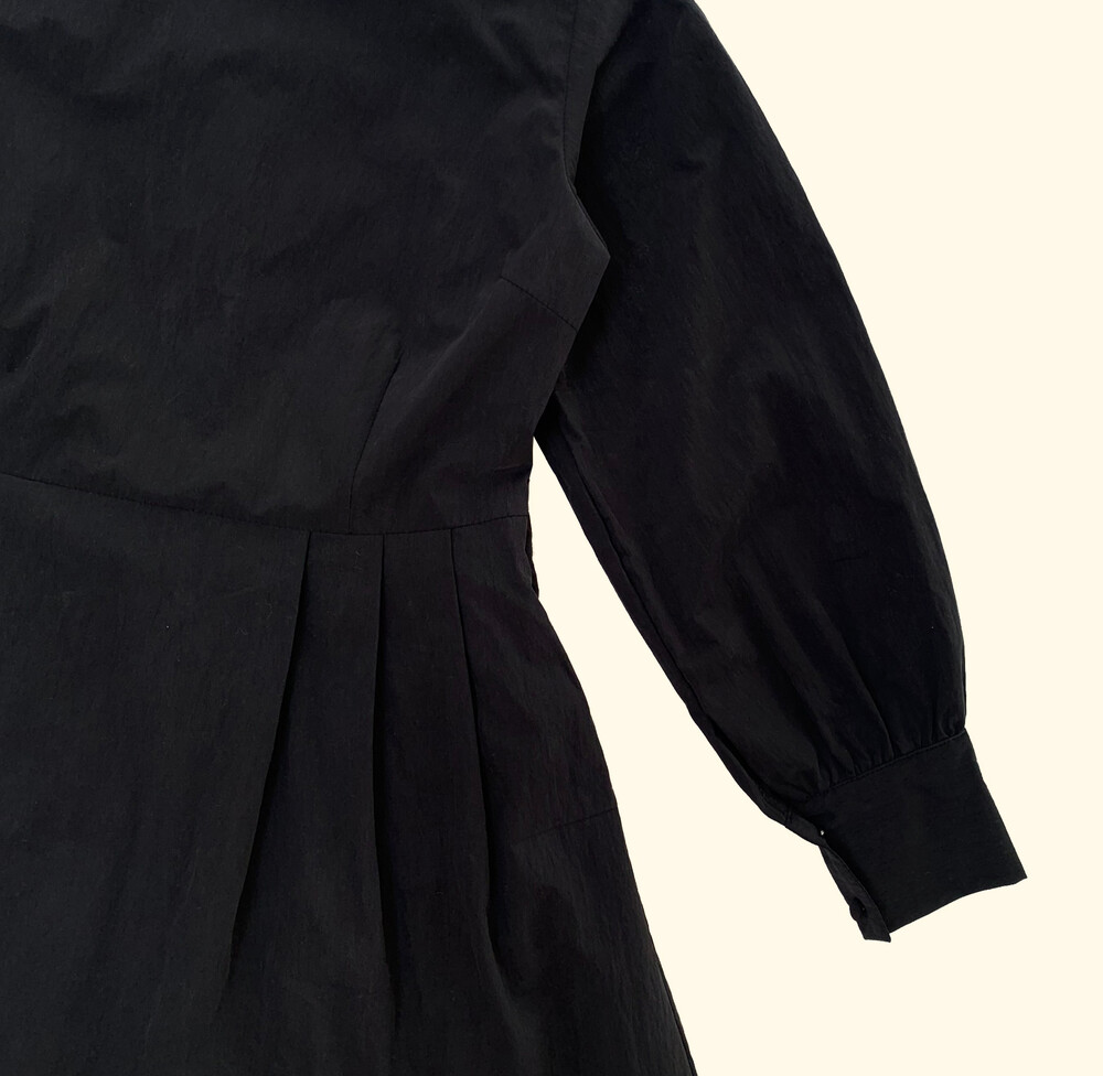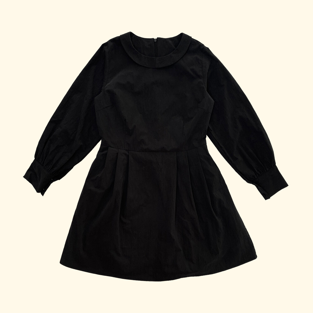 산뜻한 길이감의 블랙 미니 드레스입니다