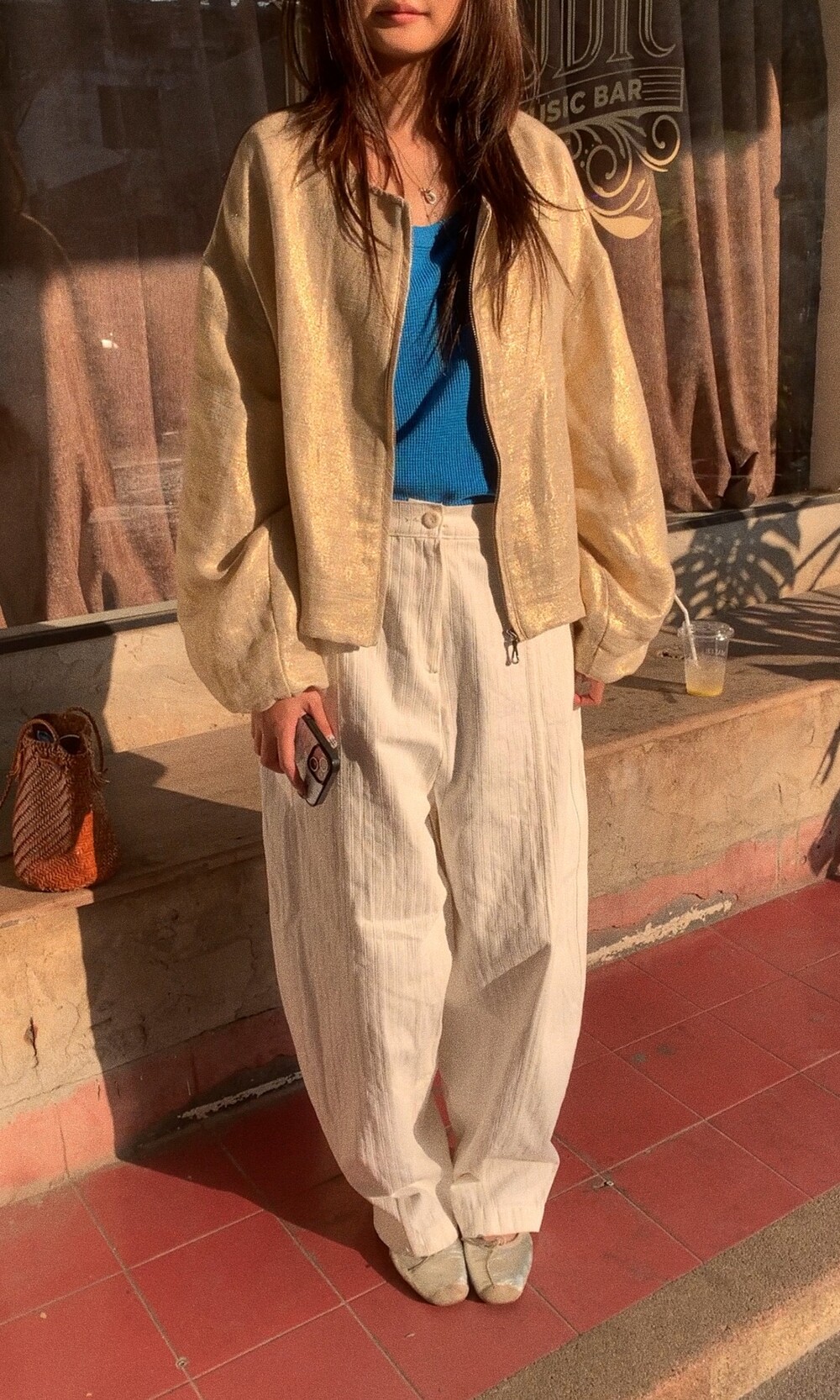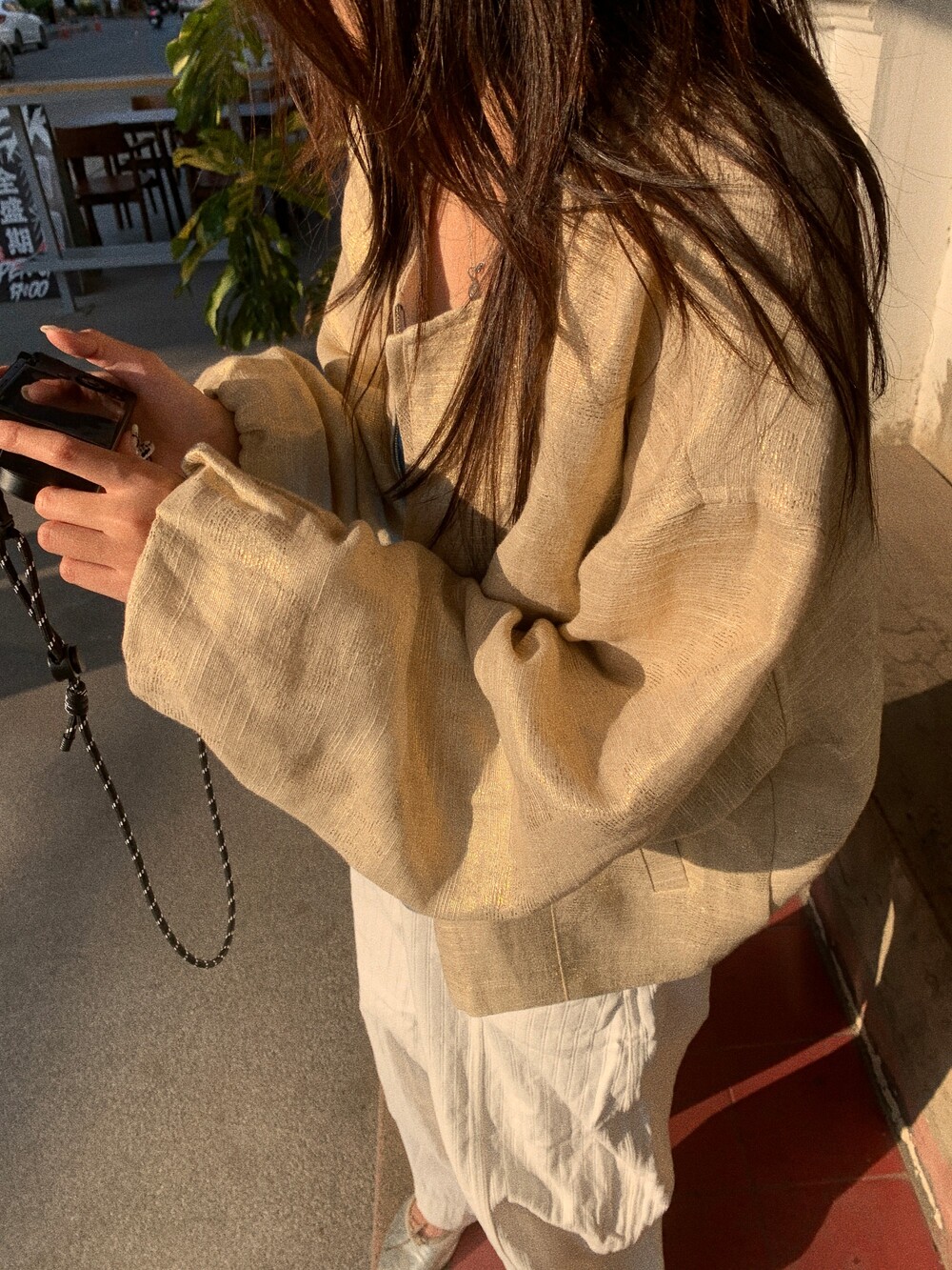 허리선은 강조하지 않는 편안한 느낌의 자켓이에요.