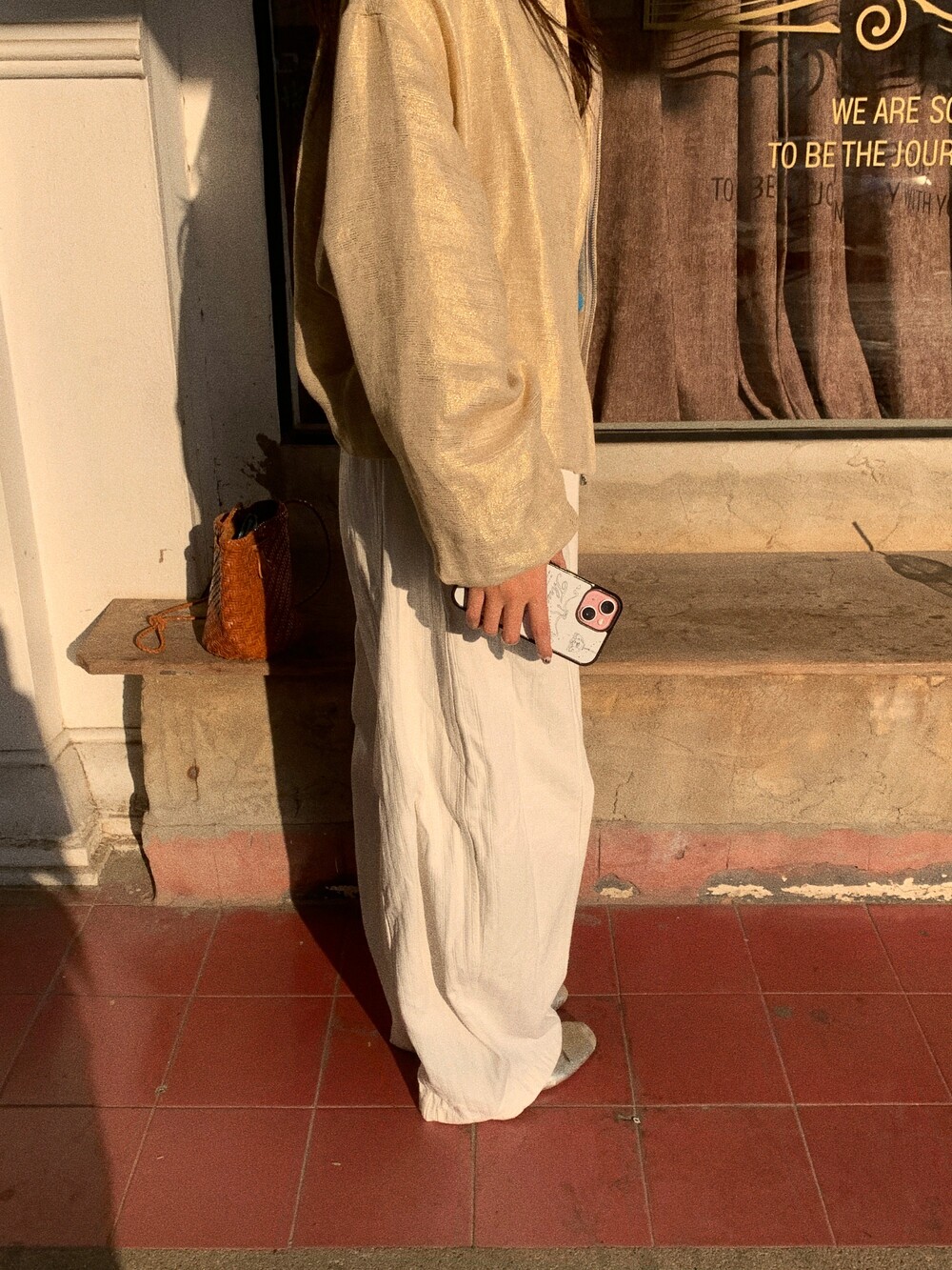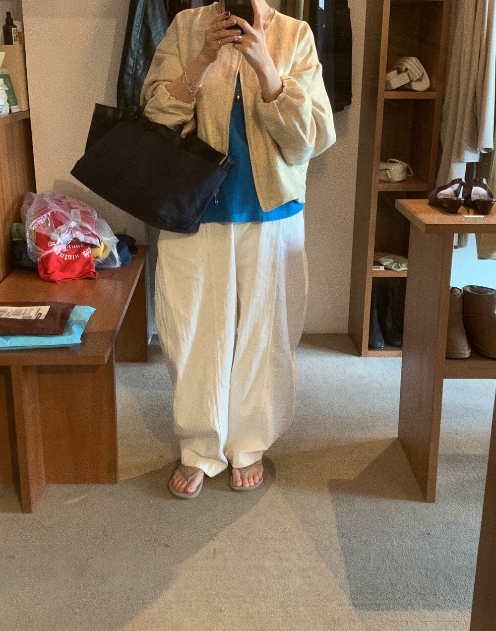 리넨과 비스코스 혼용으로 후들거림이 있는 소재입니다.