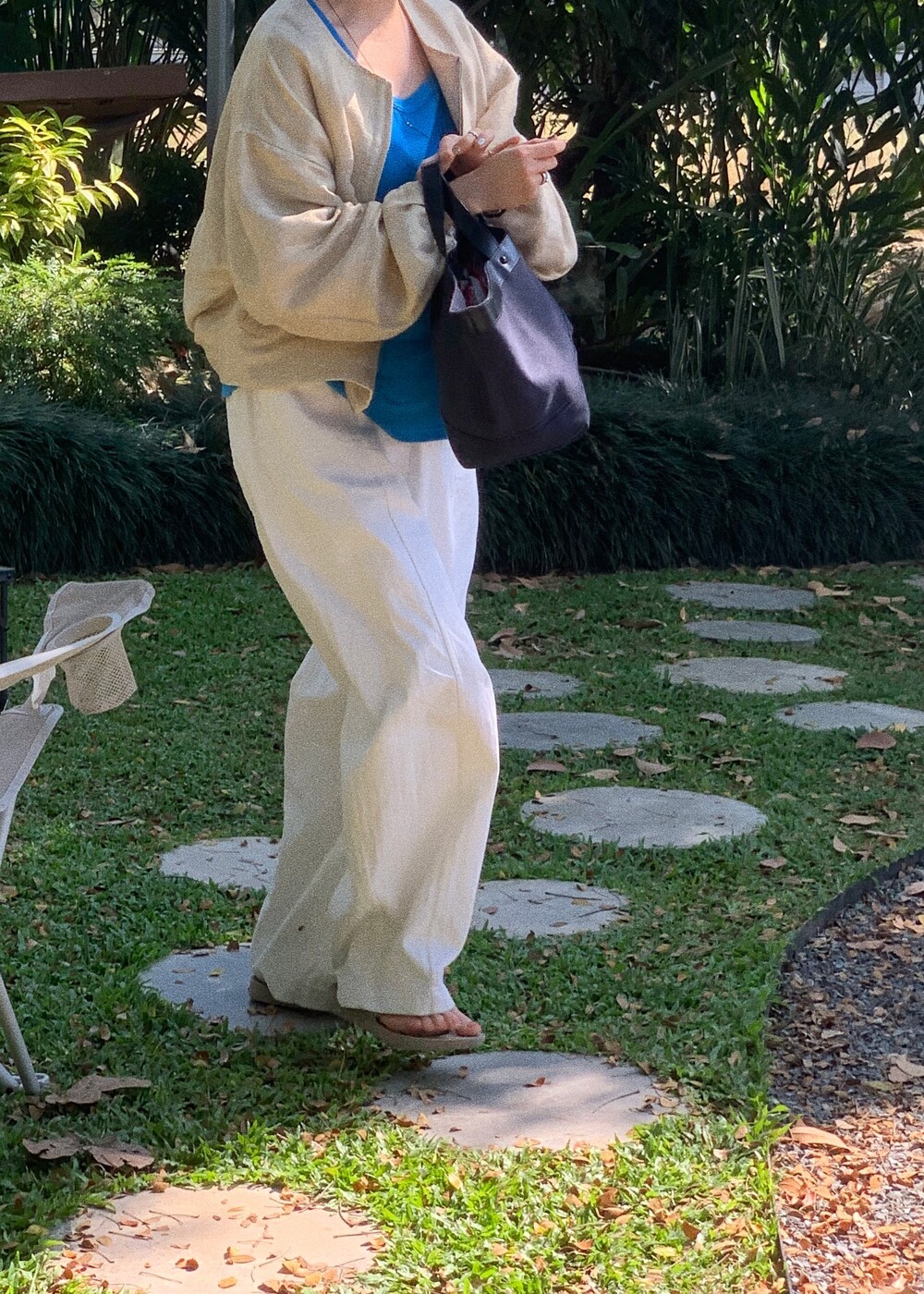리넨 특유의 네추럴한 결에 비스코스를 블렌딩해 거칠지 않고 부드러운 촉감을 완성한 원단입니다.