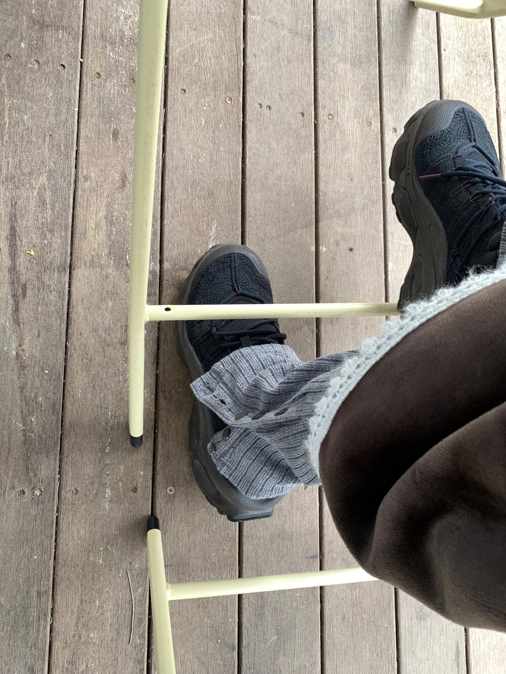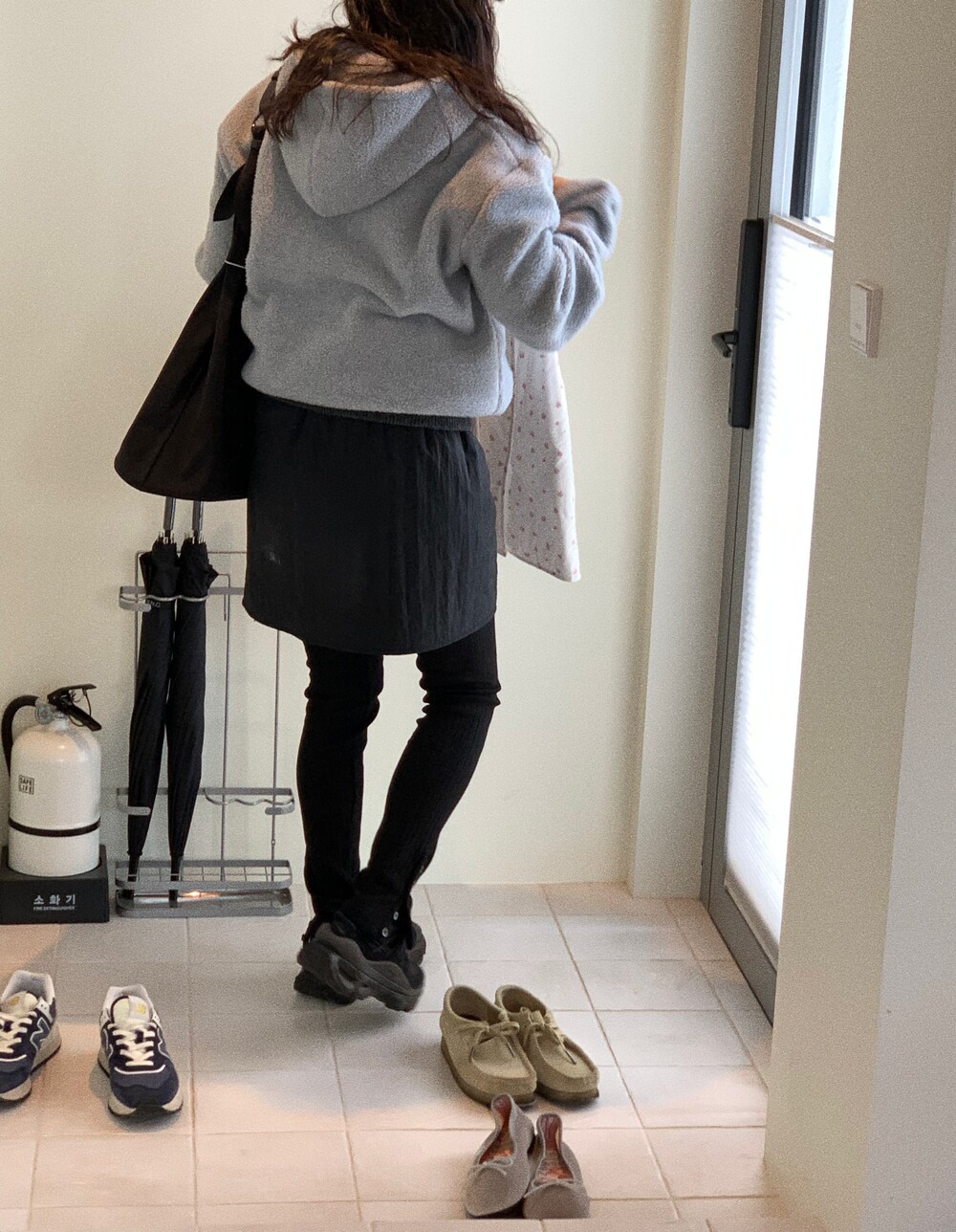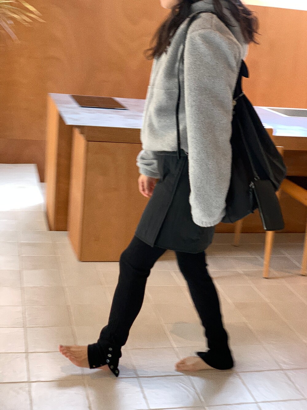 신발을 덮듯이 연출하면 레그워머를 한 듯 스타일리시한 느낌입니다