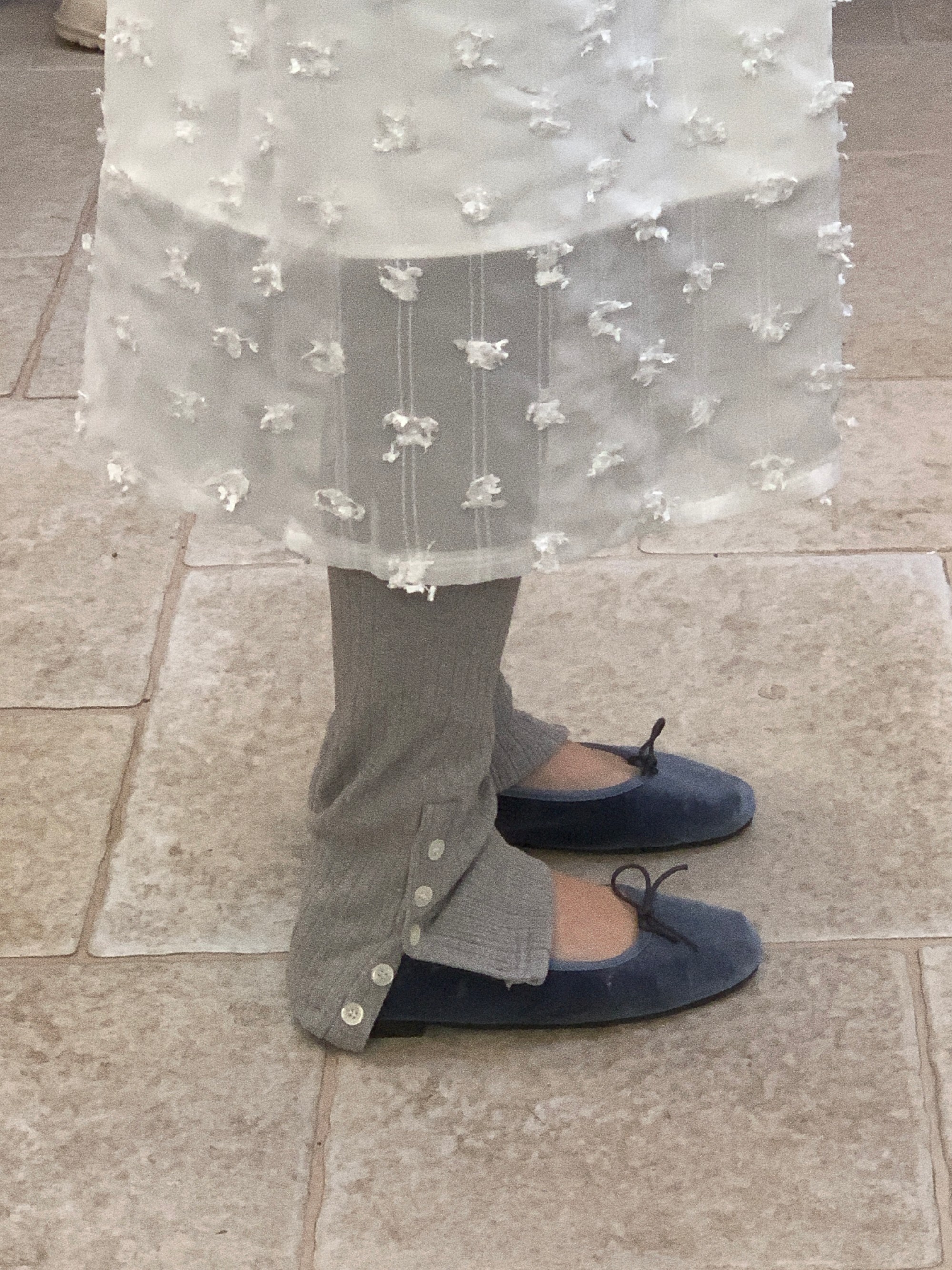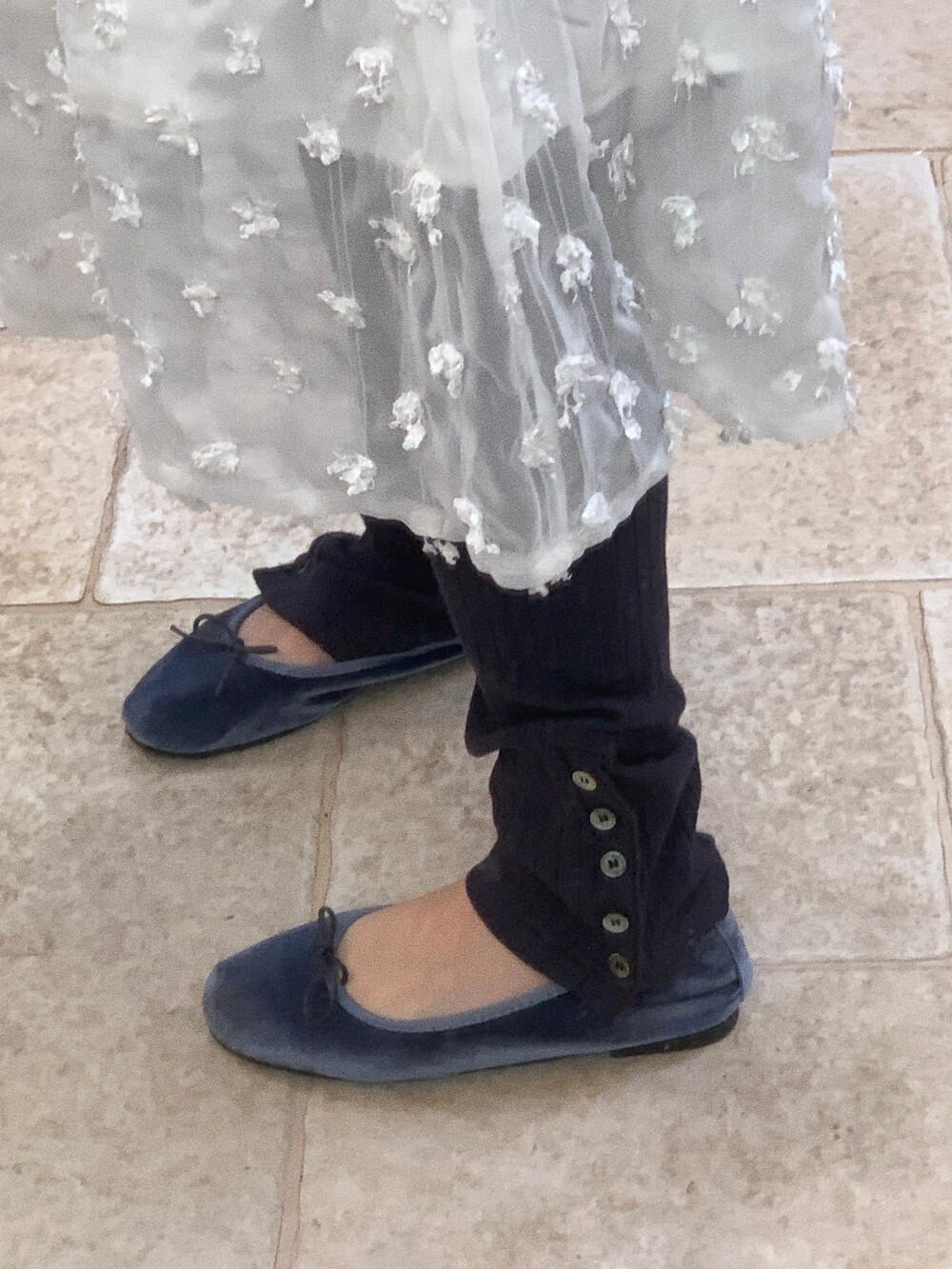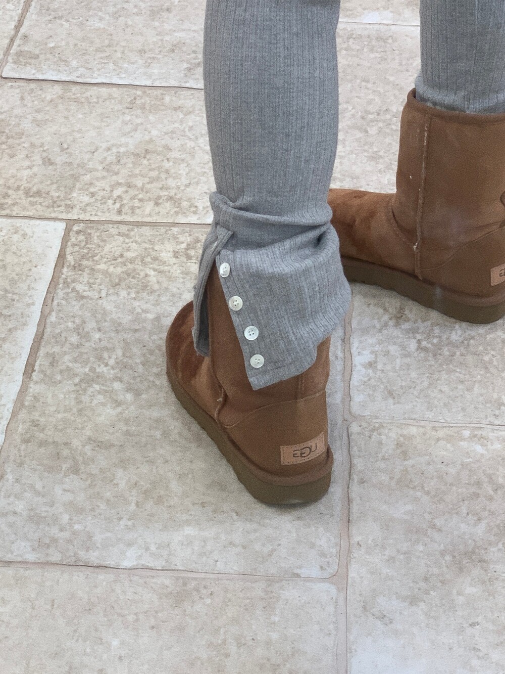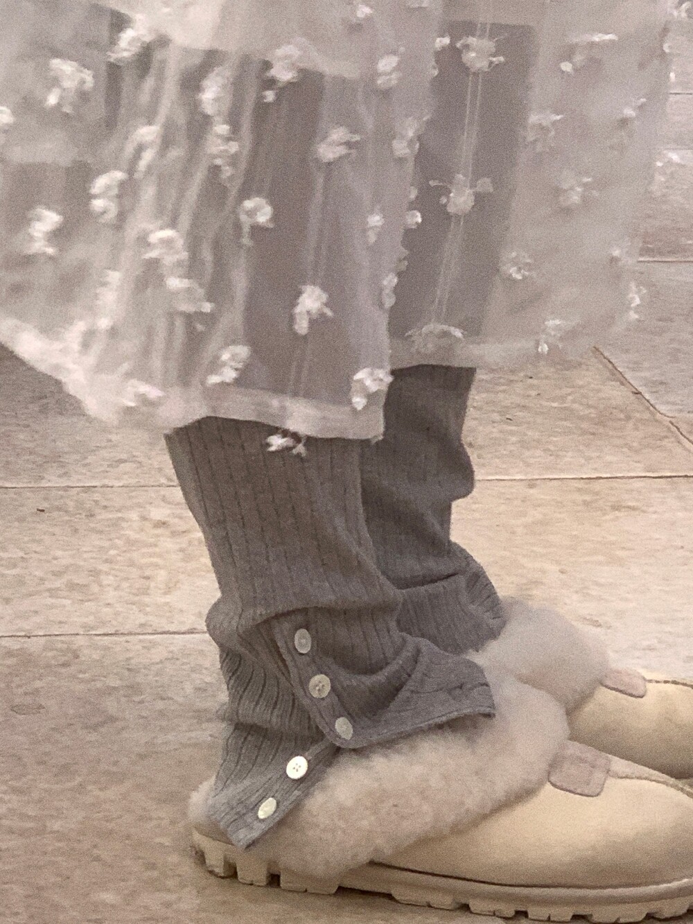 넉넉한 길이감으로 만들었어요 신발을 덮듯이 연출하면 레그워머를 한 듯 스타일리시한 느낌입니다